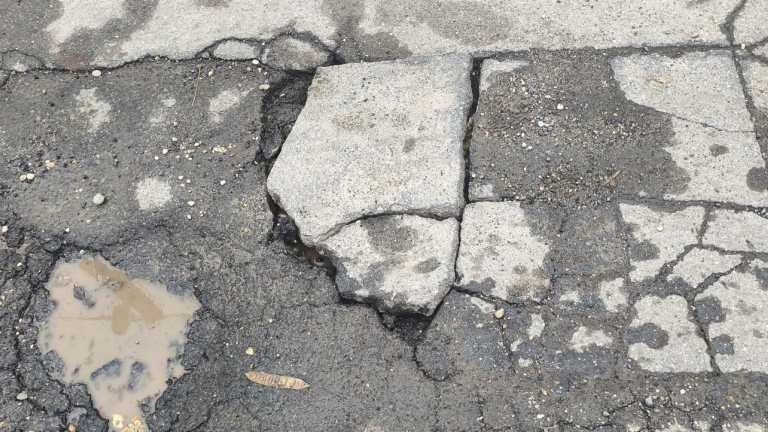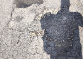 Kispest magyar László u. 5. előtt évek óta a beton törik szét, rendes javítást sose kapott, ebből következik, hogy a tél idén se volt kegyes a szakaszhoz. Széttört beton darabokat mossa ki a víz és keletkeznek hatalmas kátyúk.