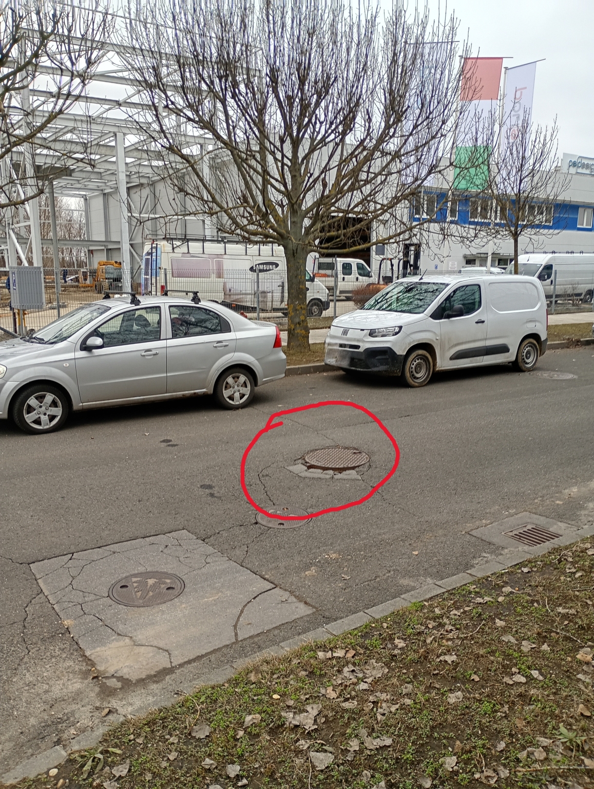 Hiányzó aszfalt a csatornafedél körül