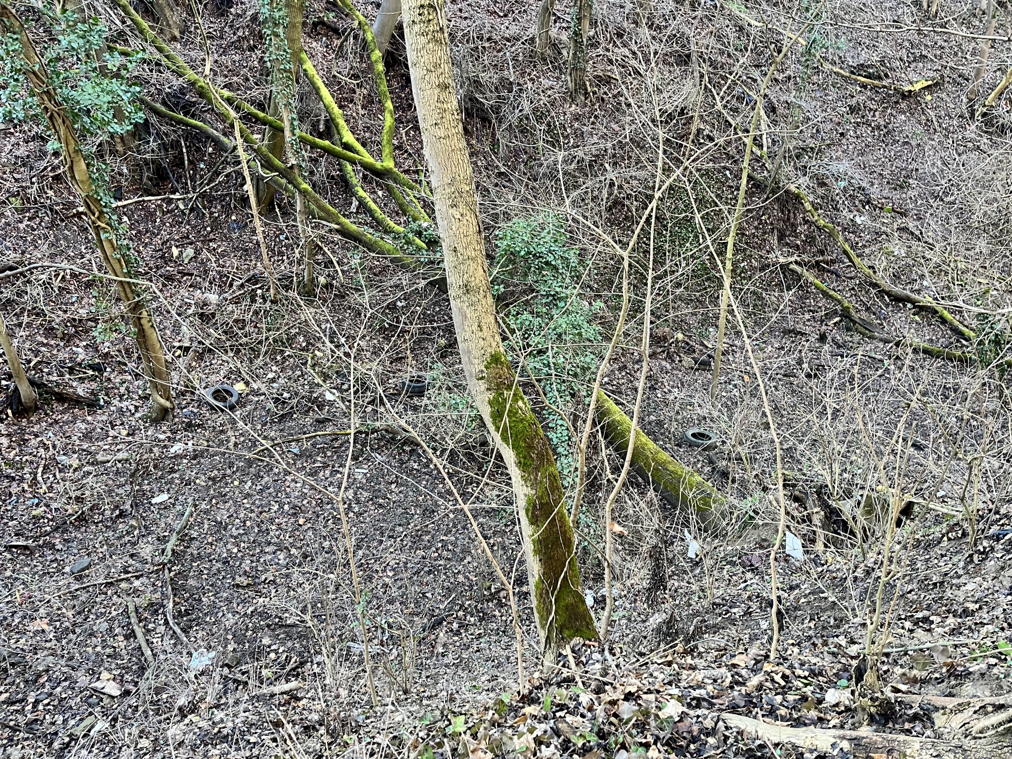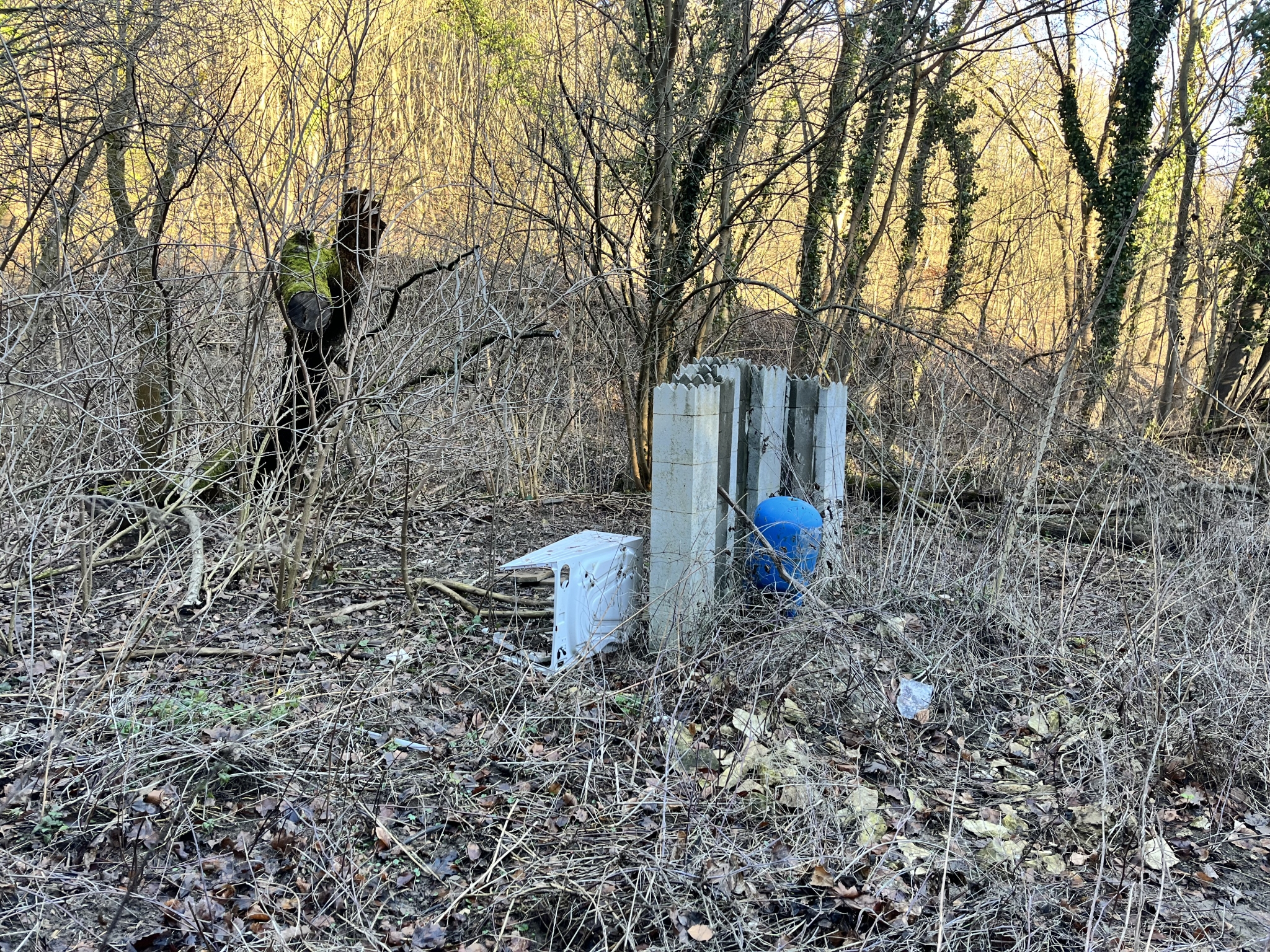 Kazán, autógumi, matrac, egyéb kommunális hulladék a volt Béke Gyermekotthon felé az erdőbe dobálva.