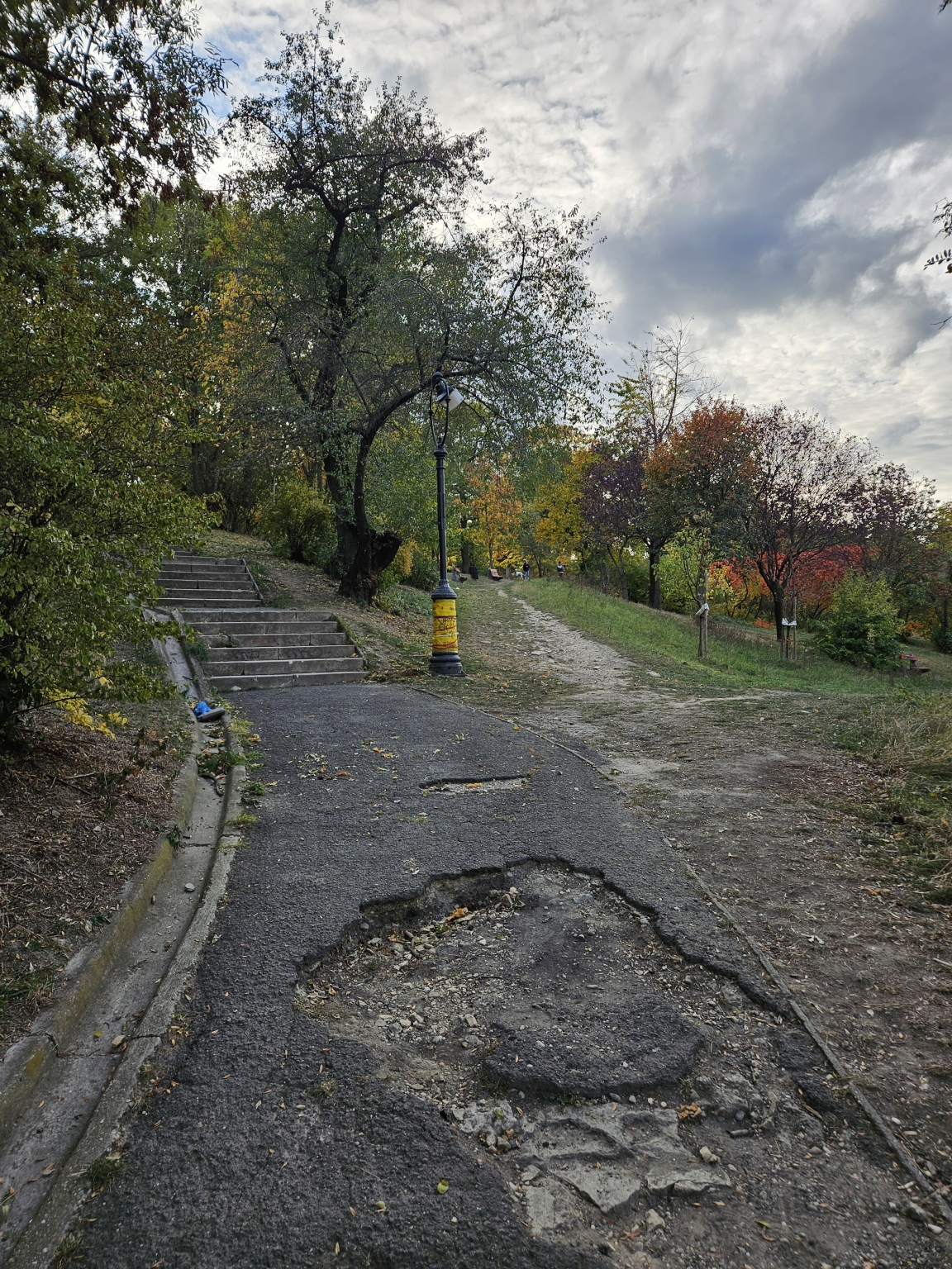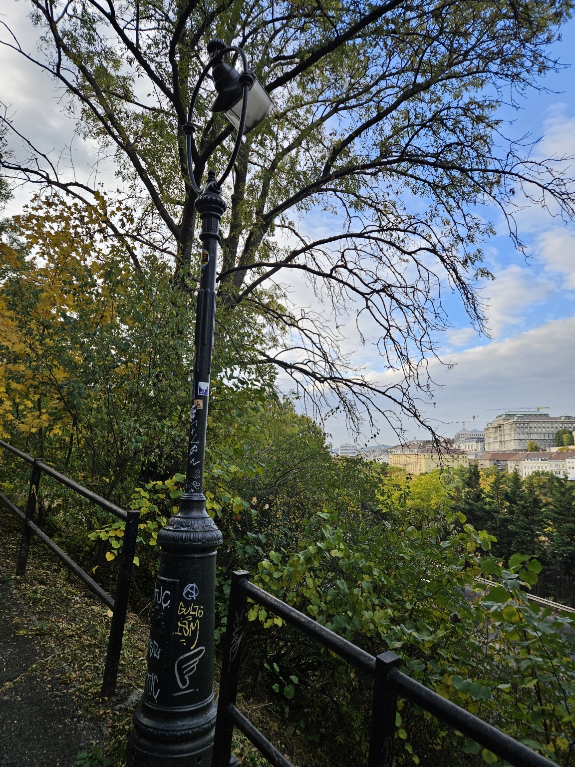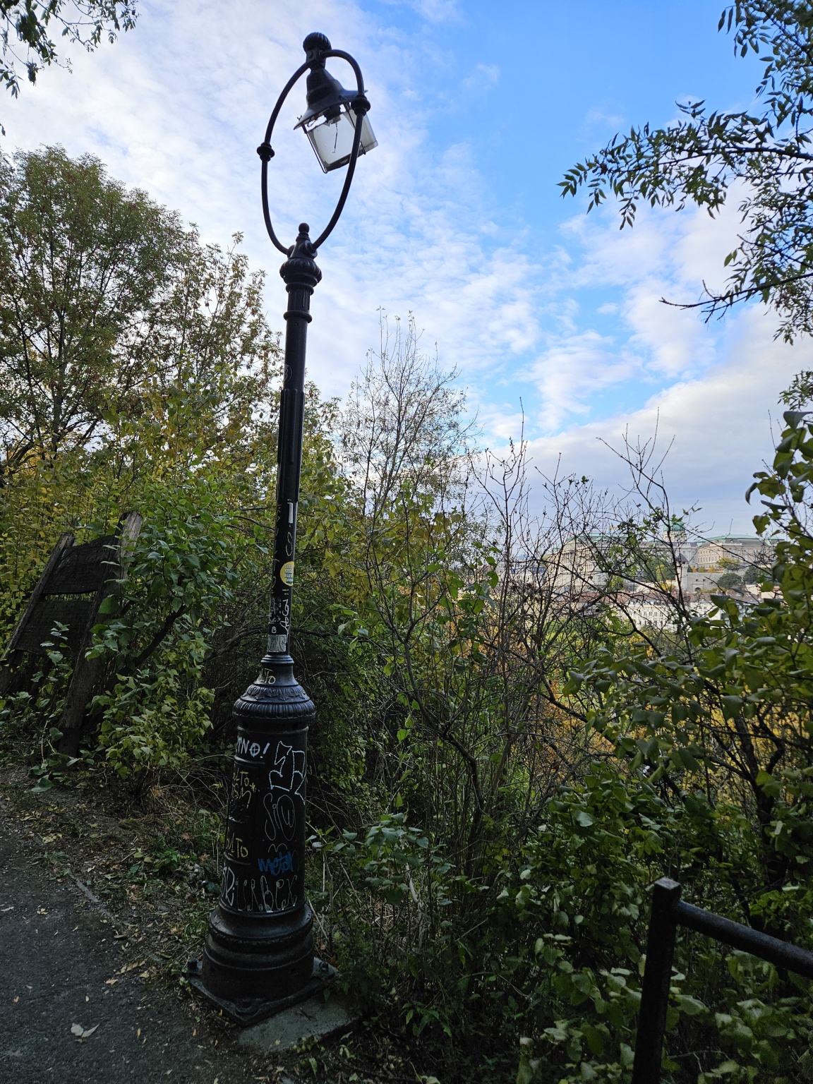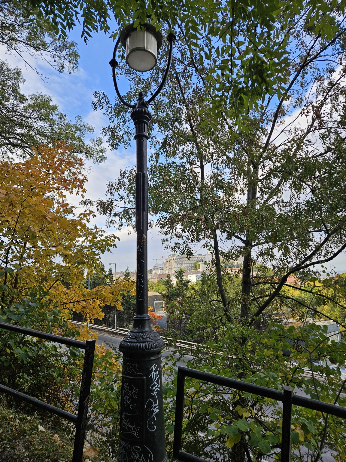 I. ker. Antal lépcsőn a kiránduló sétaúton 3 db kandelláber kiégett, széttört, régóta. (min. 2024. jan.)
