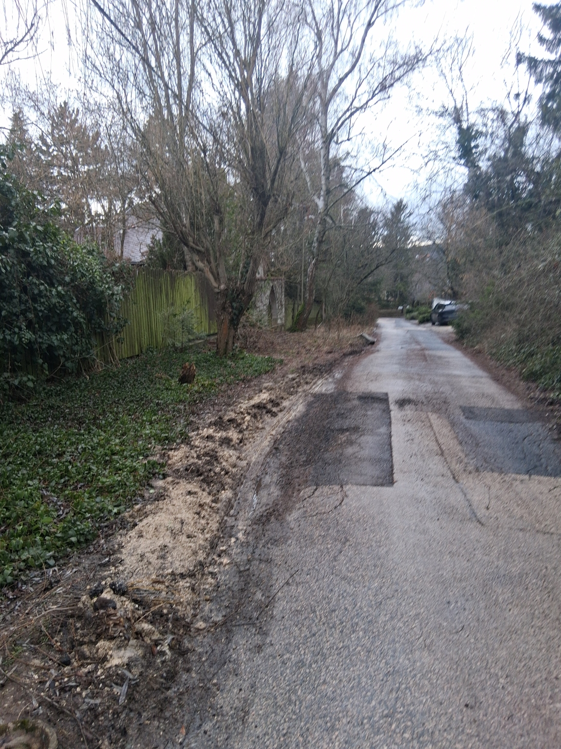 Budapest 1028.Nedű utca 5.előtt a növényzet teljeden betakarja az ut negyedét. Mivel ez egy szűk utca az autók letérnek az útról, rá a zödfelületre, evvel roncsolva az útpadkát és a járdát ami zöldterület. Már Megsüllyedt az útpadka a Nedű utca 4.oldalán.