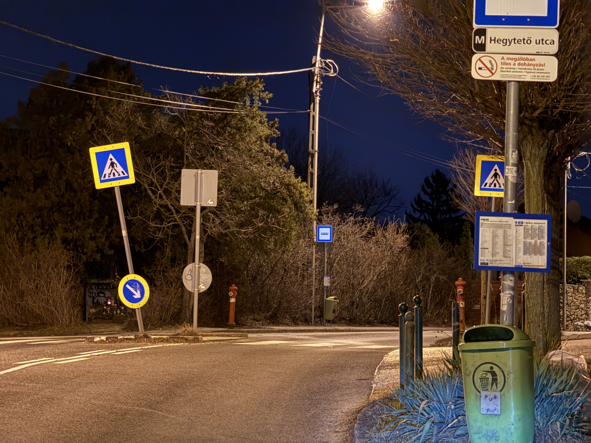 A Hegyalja út - Hegytet ő utca kereszteződésében van egy járdasziget, amin a 2 táblaoszlop közül az egyik ferde. A BAH-csomópont felől érkező nagyobb járműnek eléggé útban van. Kérjük, tegyék rendbe!