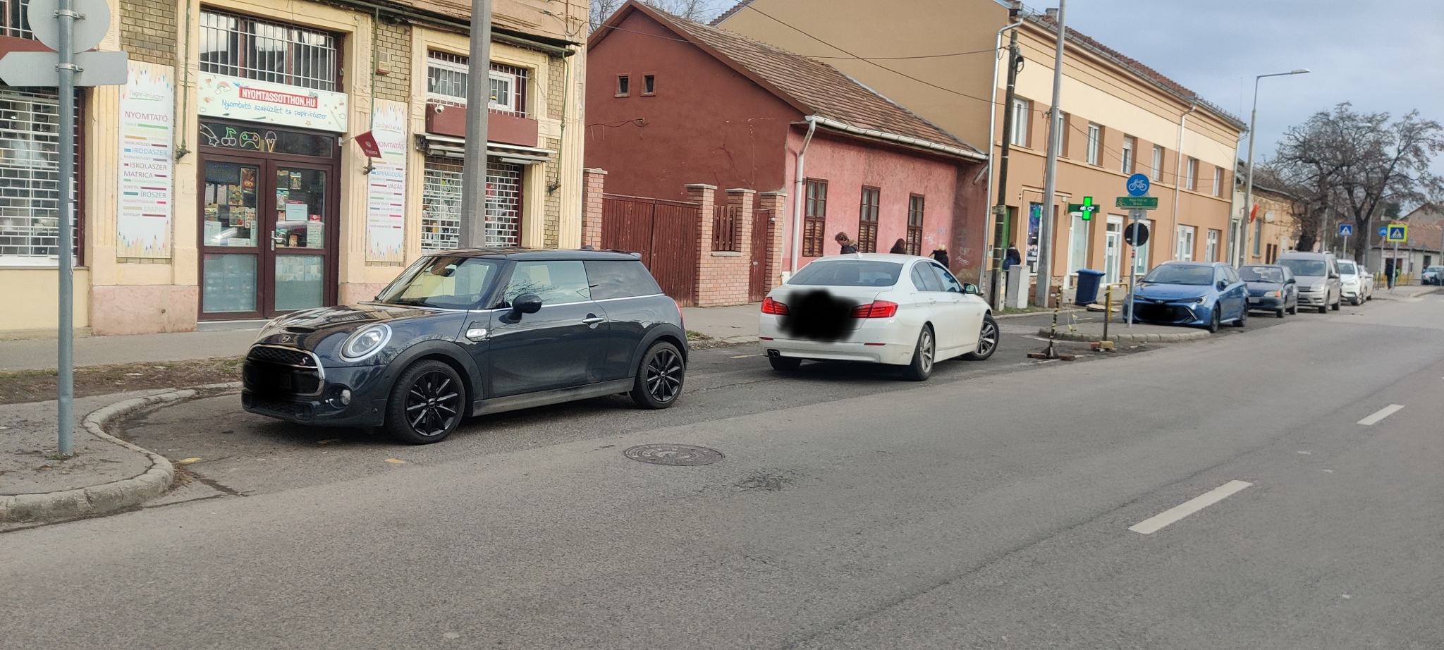 Rendszeresen parkolónak használják a Bicikli út fel-le járóját egy pick-pack pont előtt.