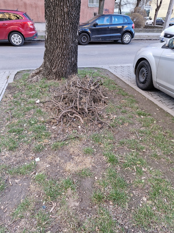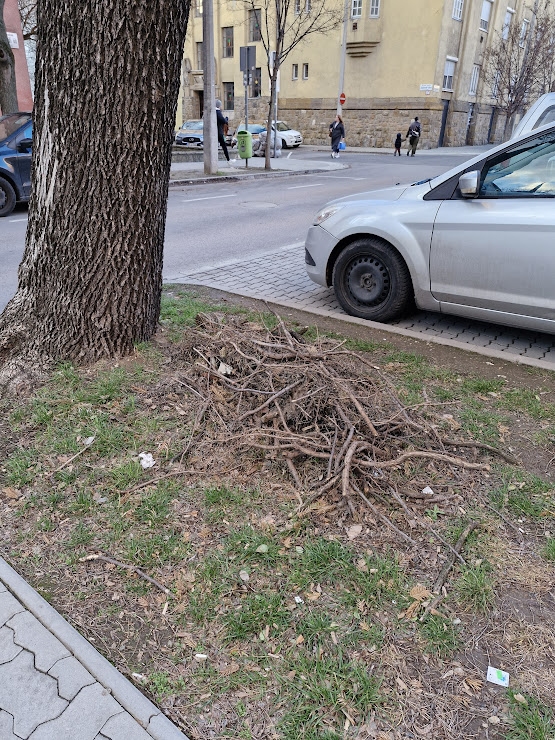 Angyalföldi úton egy kupac darabos zöldhulladék várja, hogy elszállítsák