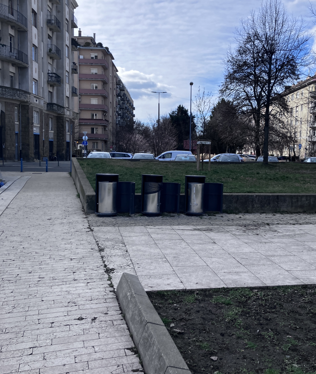 Ez a három kuka a téren minden nap a képen látható módon tárva-nyitva áll. A tér többi részén lévő hasonló kukák csak ritkábban, de itt: mindig.
