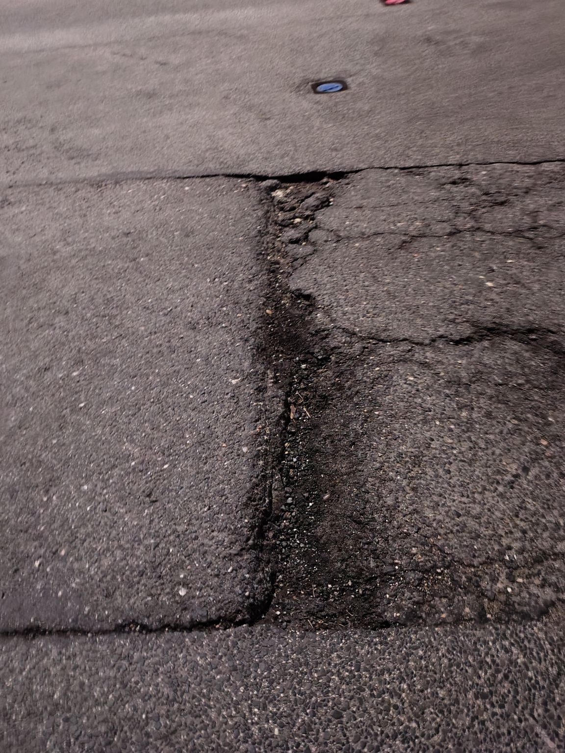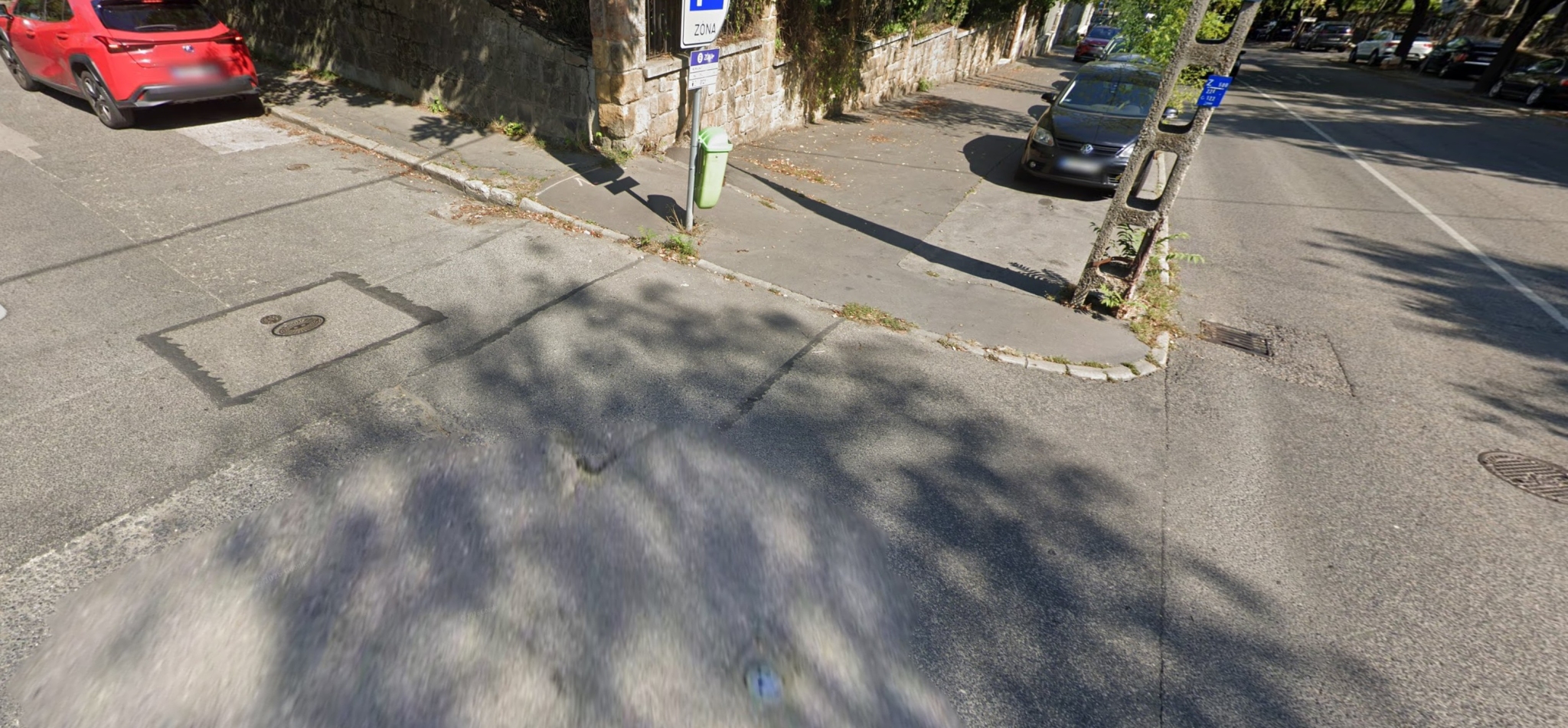 Az Ügyész utca elején, közvetlenül az Istenhegyi útról való leágazása után hosszanti repedés kátyúszerűen kiszélesedve az úttest közepén. A sötétben, kanyarban alig látszik, pedig több mint 1 m hosszú, helyenként 20cm széles és 7-8 cm mély. Motor/robogó kerékkel életveszélyes.