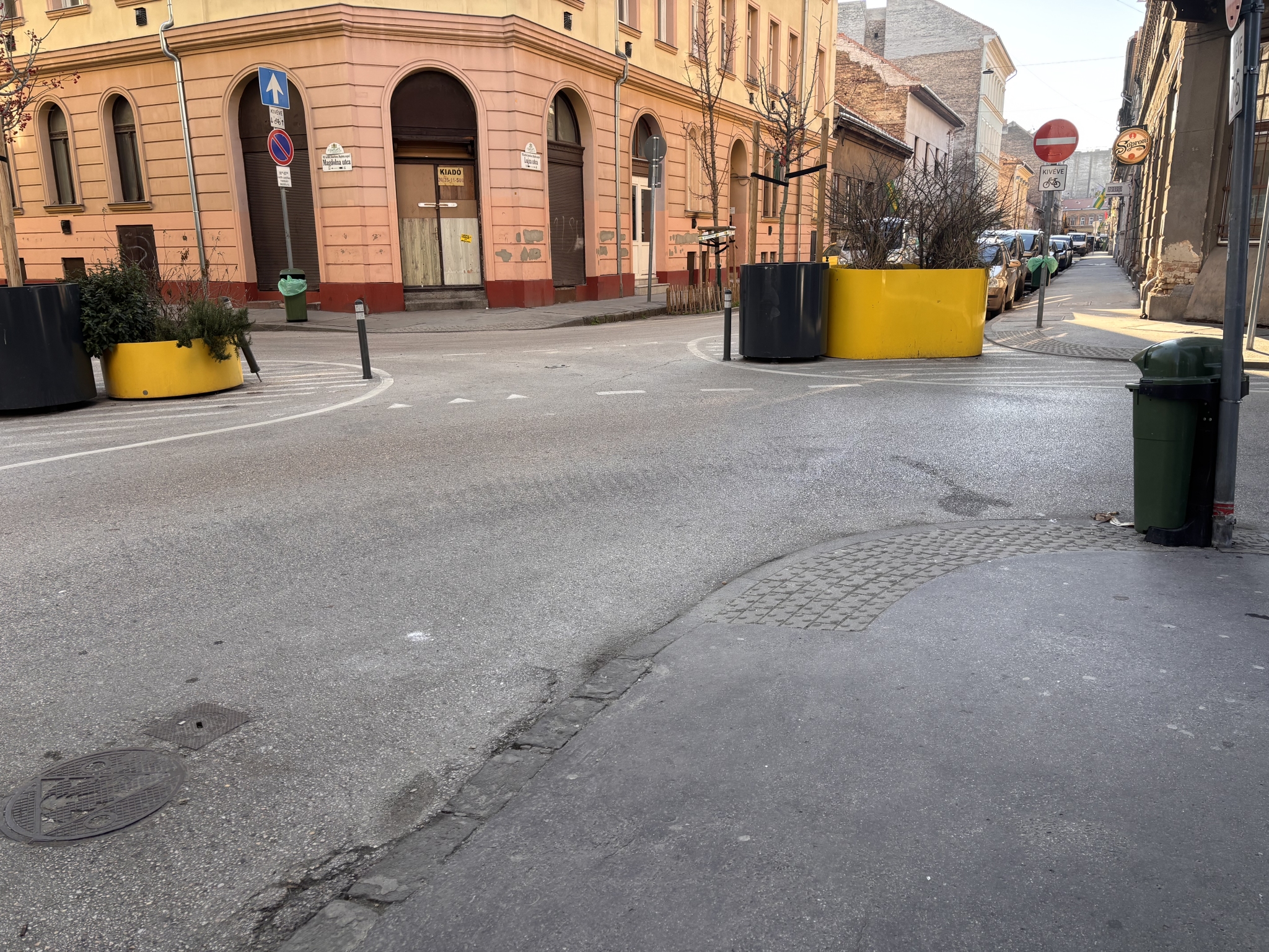 VIII. kerületi Lujza utca - Magdolna utca kereszteződéséből hiányzik az áthajtást megakadályozó poller