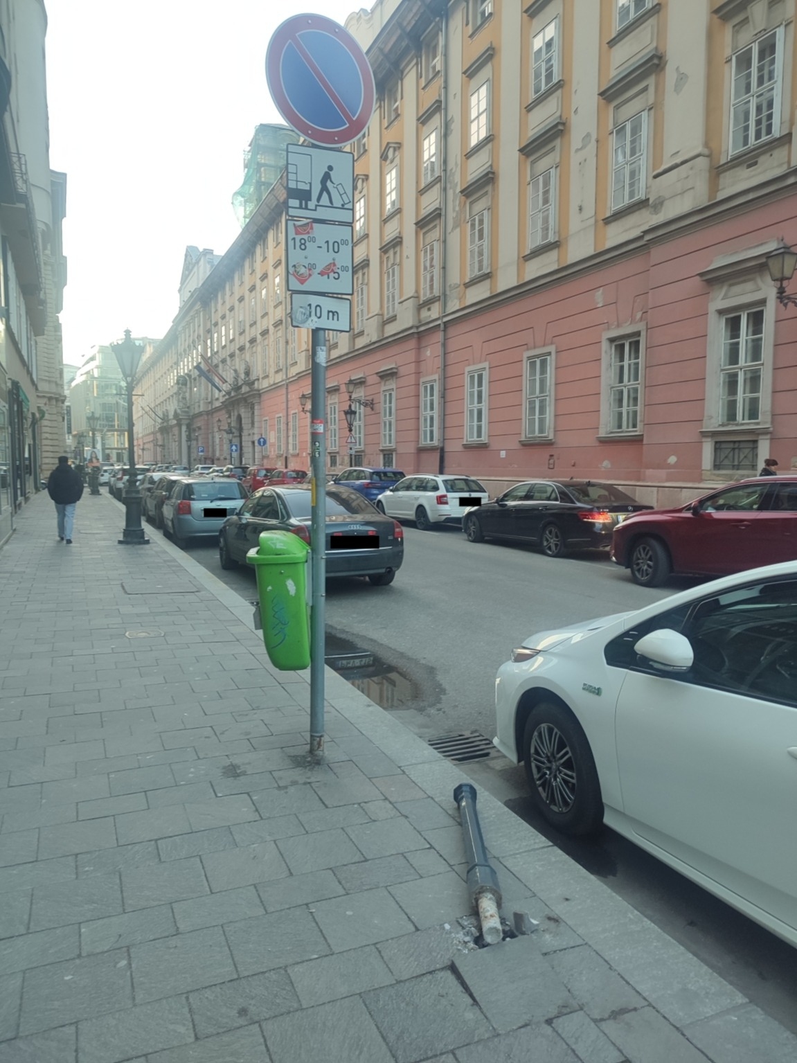 Kidőlt az egyik poller a helyéről a Pilvax és Városház utca sarkán.