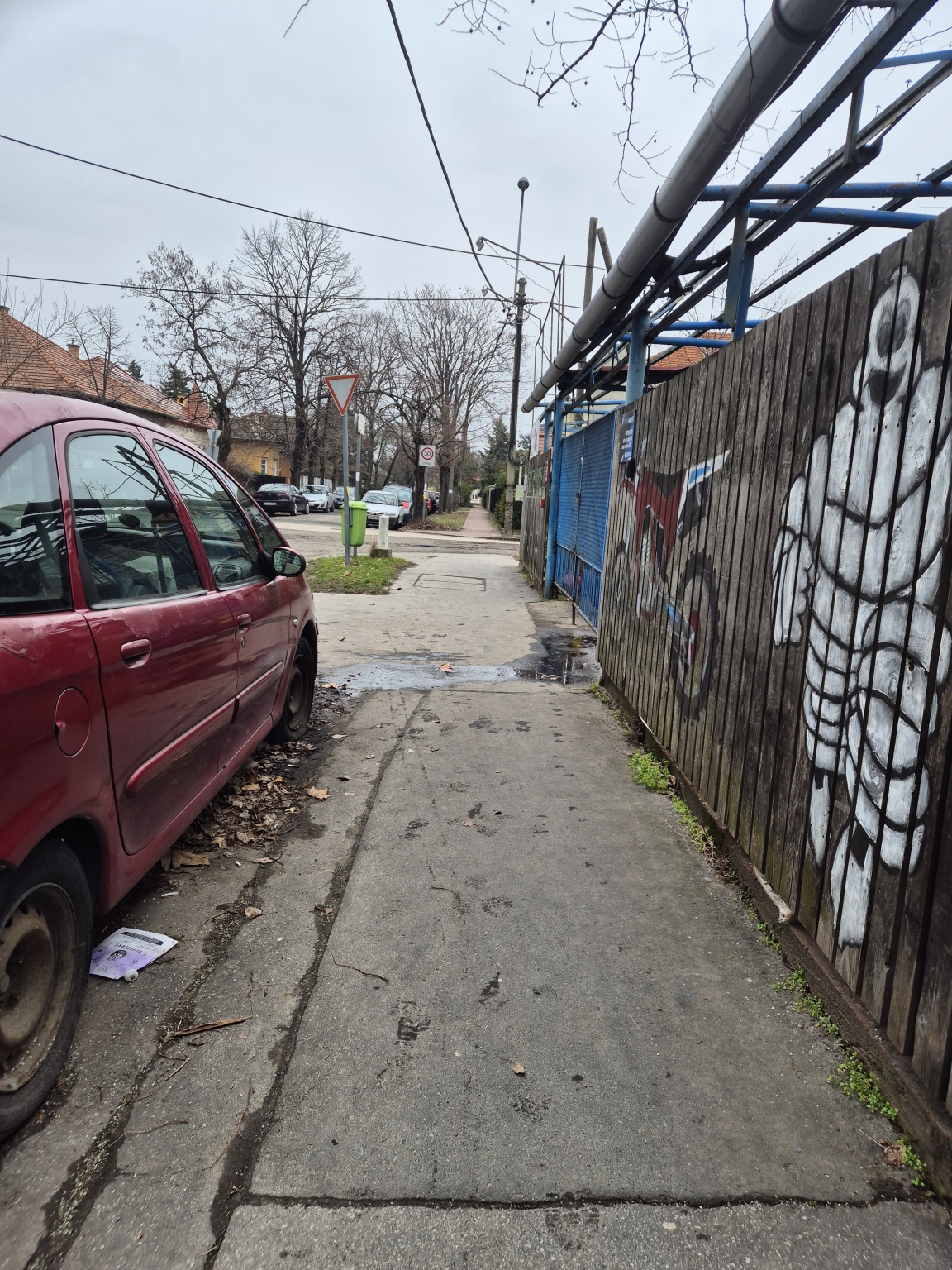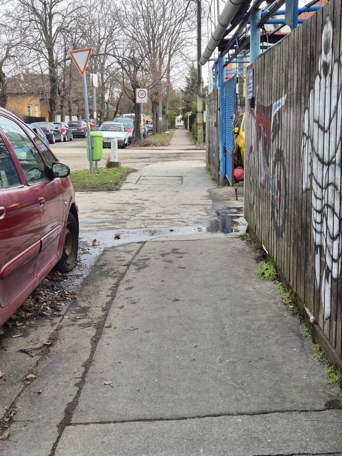 A csatolt képeken látható módon, esős időben az udvaron tárolt autóalkatrészek megáznak, ezután az olajos szennyvíz az utcán köt ki.