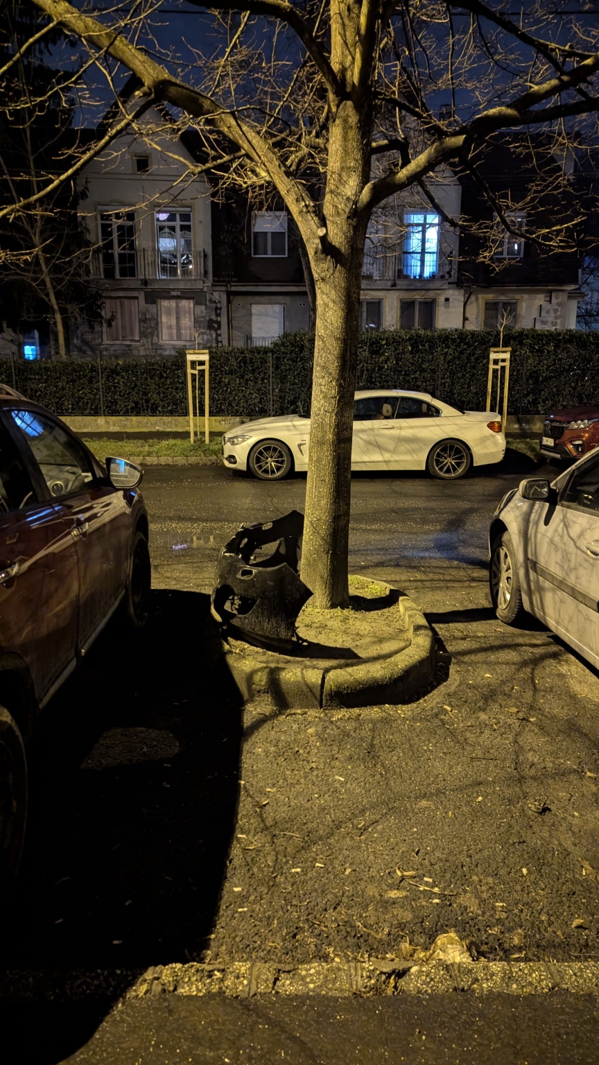 Több mint 1 hete hever az utcán a fa tövében ez az első lökhárító. Nagy eséllyel az egyik lakó tette ki a társasházból, viszont a továbbiakban már hiú ábránd azt várni, hogy el is fogja vinni. Kérem, szállítsák el, avagy a főváros vonatkozó rendelete értelmében szólítsák fel a társasházat.