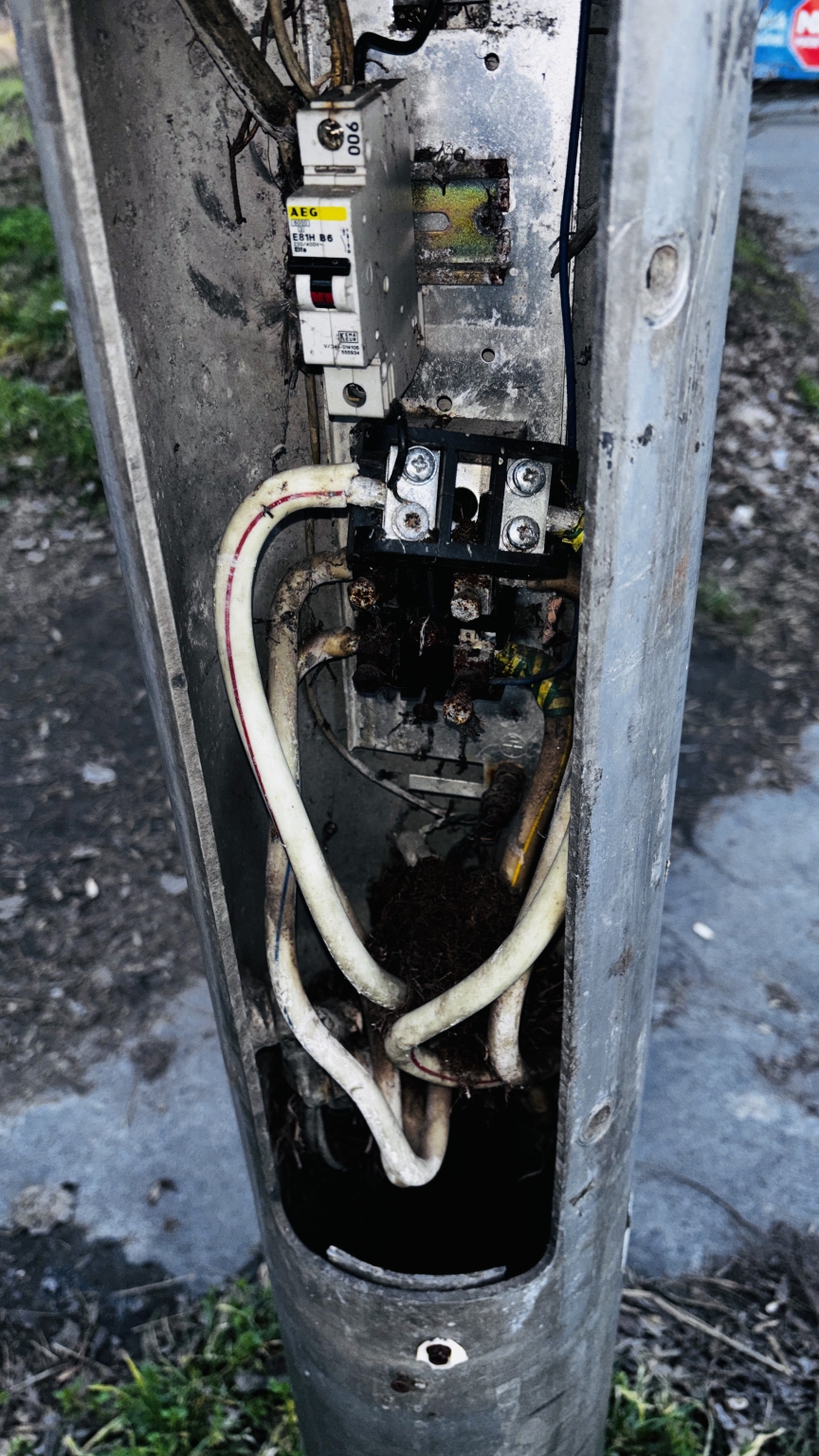 Végre el kéne dönteni kié a villanyoszlop, hiába jelentettem be, azóta még rosszabb állapotban van. Ha egy gyereket meg fog rázni az áram akkor ki lesz majd a felelős?