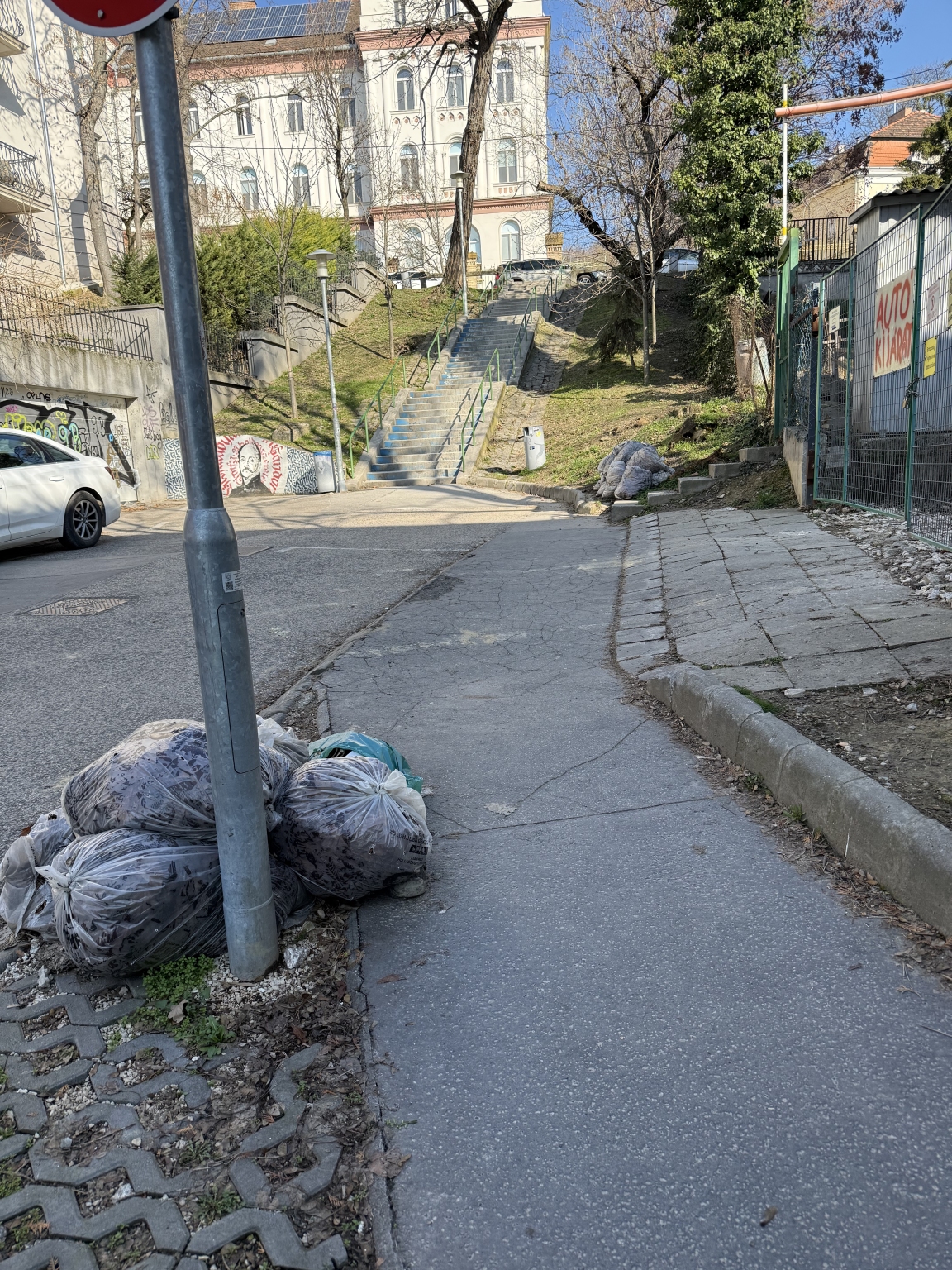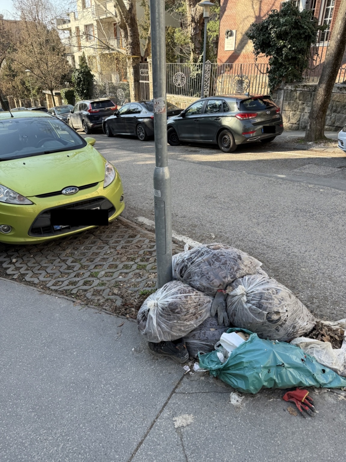 Ez a sok zöldhulladékzsák vagy már fél éve nincs elszállítva, lassan lebomlanak a helyszínen. A szemetet meg beledobálják, a varjak meg széthordják..
