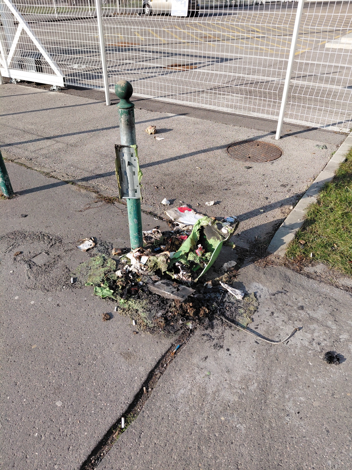 Szétégett kuka romjai