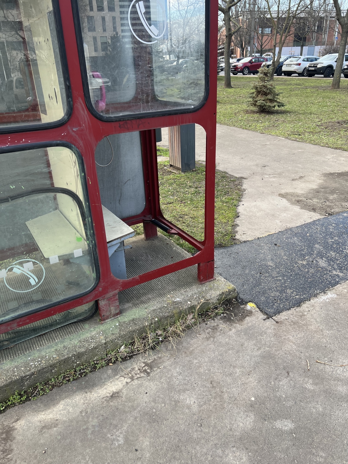 Kitört fülke ablak és összegraffitizett felület. Helyszín: