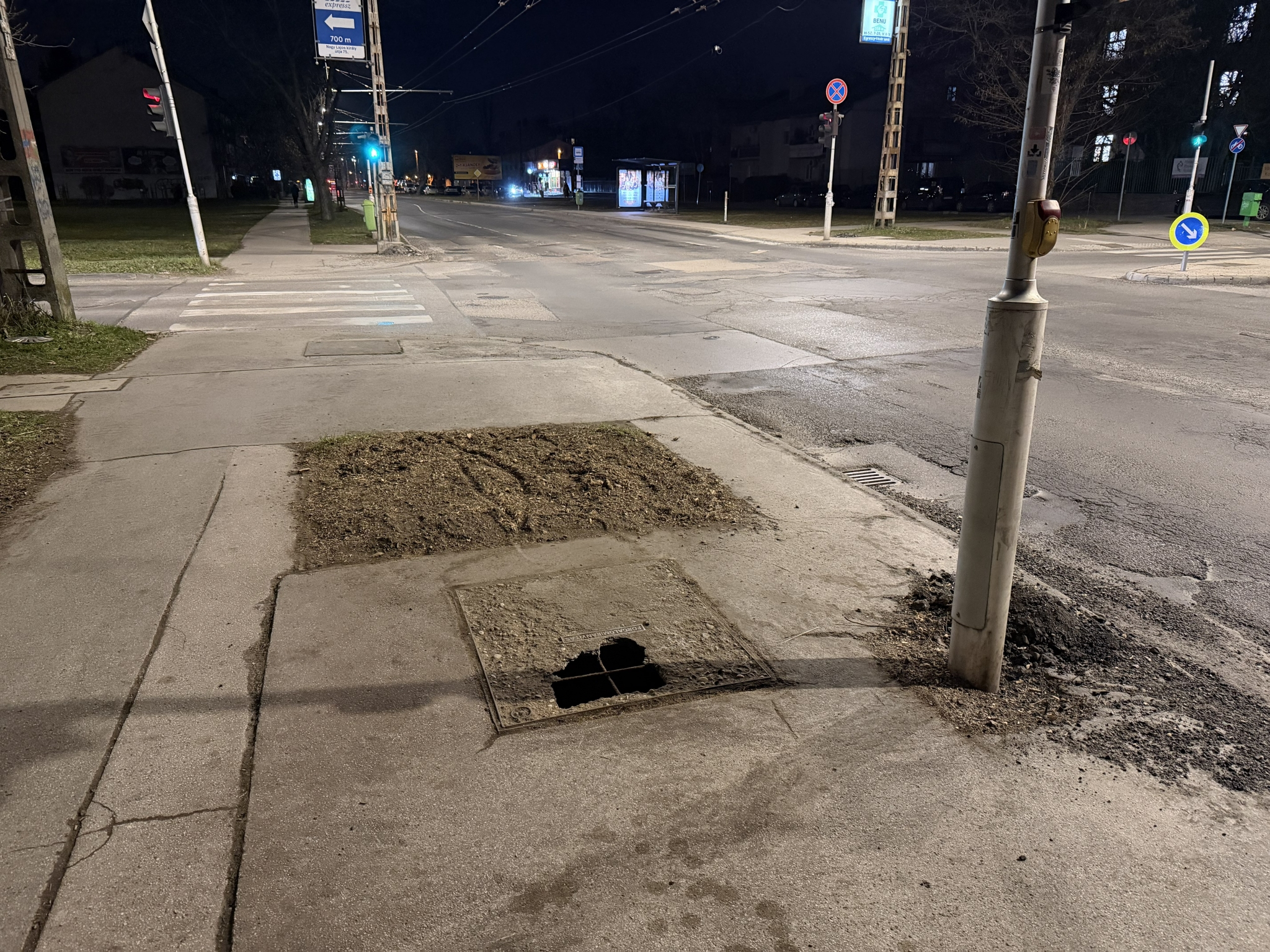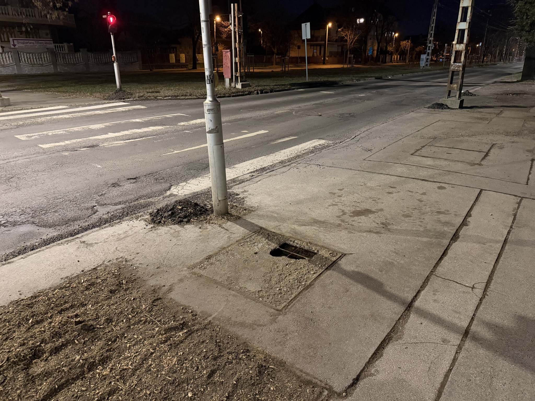 Zuglóban a Mogyoródi út és a Vezér utca sarkán a "Forgalomirányítás" feliratú fedlap beszakadt, balesetveszélyes. Kérem szíves intézkedésüket, köszönöm!