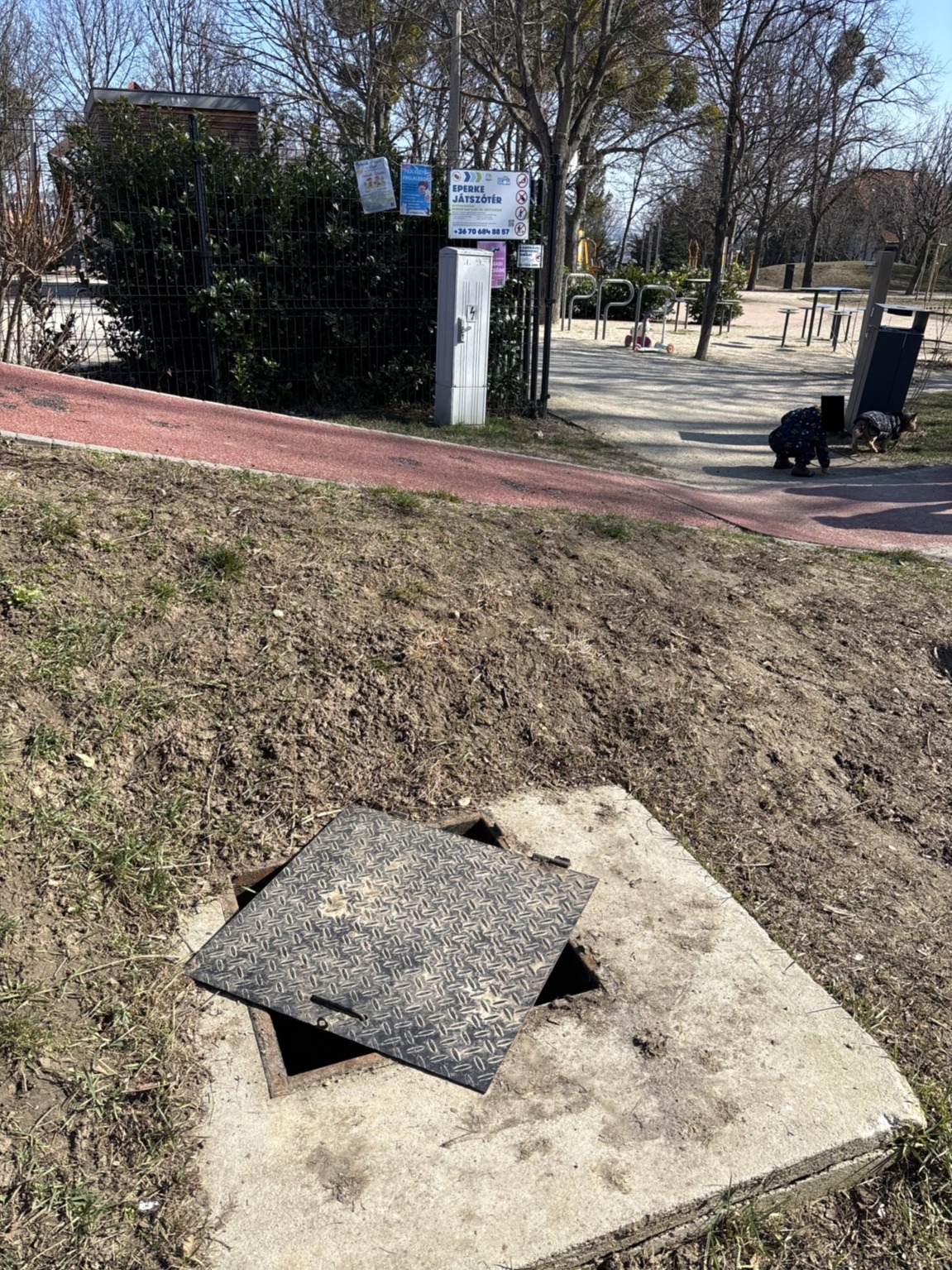 Az Eperke Játszótér mellett Apahida u. szakaszon, az akna fedele leszakadt.