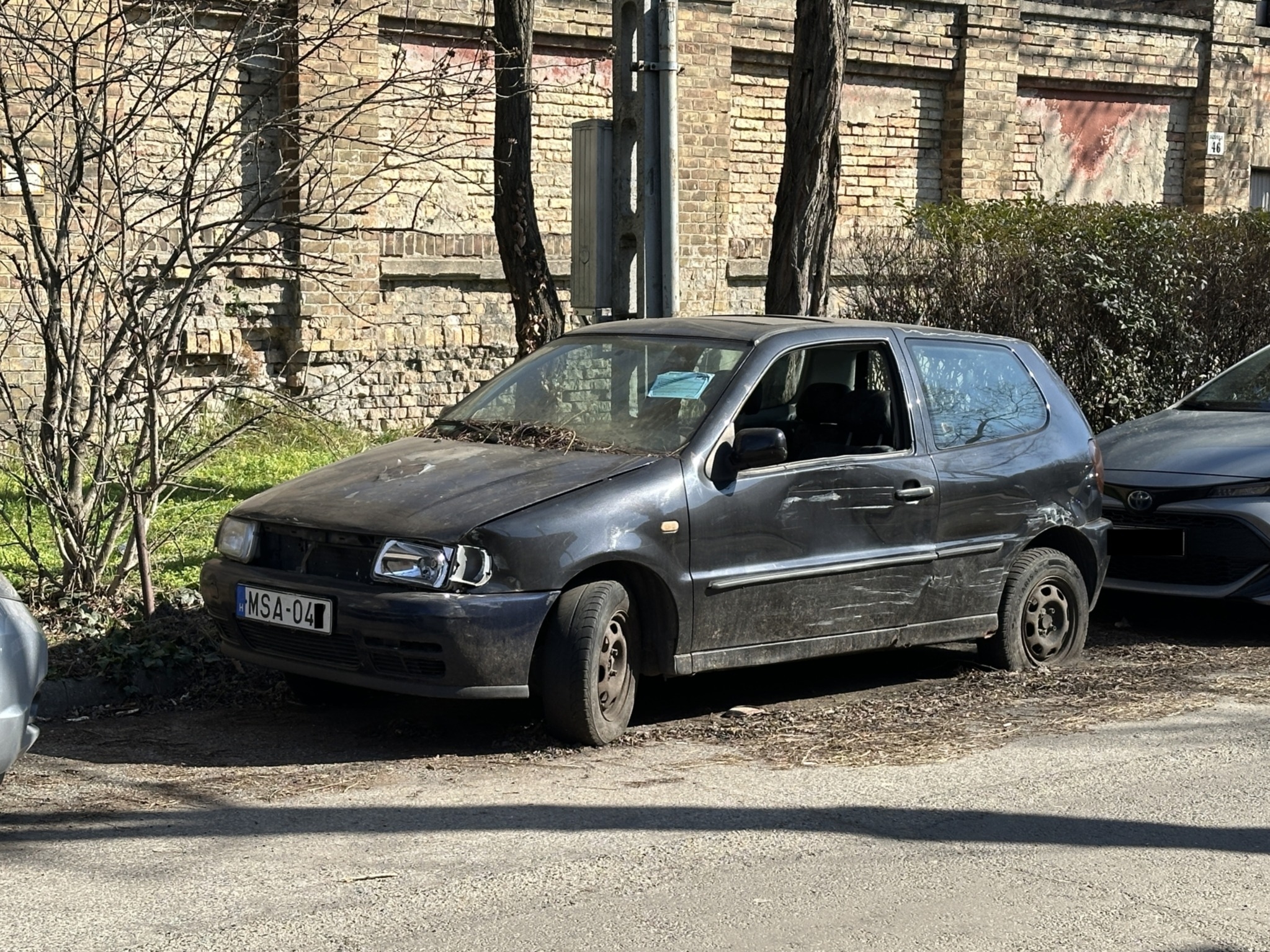 Fél éve a figyelmeztető cetli is lejárt. Feltehetően lopott, roncs, összetört elhagyott autó.