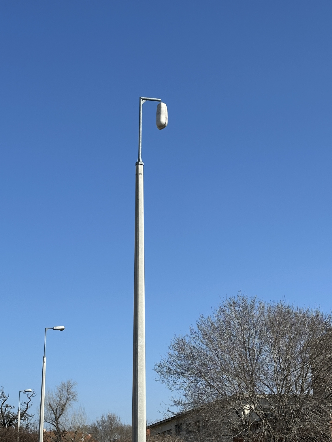 Közvilágítás villanyoszlopán a világító test le van törve. Csere szükséges.