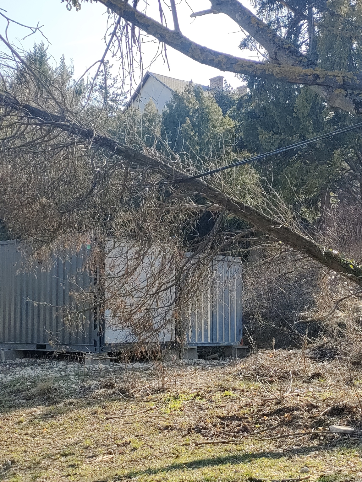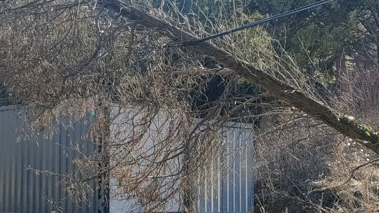 Az Edvi Illés út 2 sarkon ledőlt egy fa az alatta lévő kábelekre. Mivel a telek nincs elkeritve, baleset veszélyes.