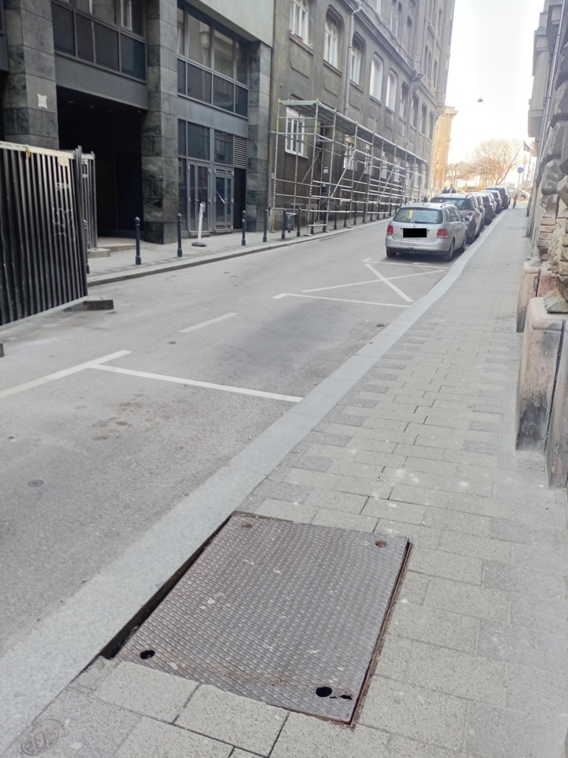 Molnar utca jardáján egy nagyobb kb. 1x1 m-es csatornafedél elmozdult, sarkai átlósan besüllyedtek illetve kiállnak.