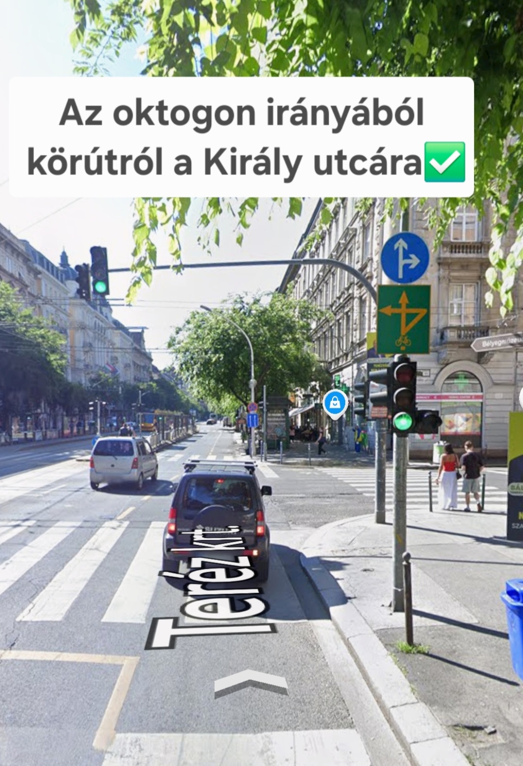 A Király utca és a Teréz/Erzsébet körút kereszteződésében a körútról van lehetőség kerékpárral indirekt balra kanyarodással fordulni a Király utcára, azonban a Király utcáról a körútra ez a lehetőség hiányzik!