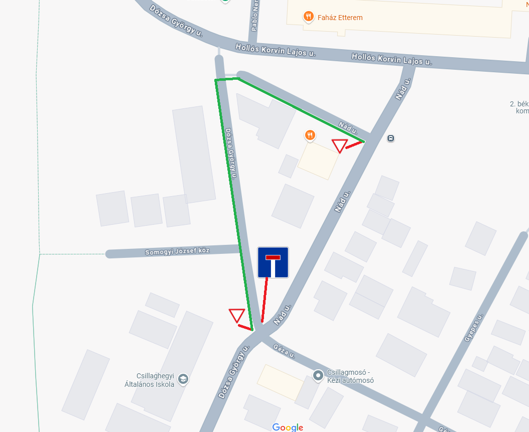 Ha a nyilvántartás szerint viszont nem átjárható akkor viszont a másik utcánál hiányzik a zsákutca tábla. Véleményem szerint a jelenlegi zsákutca táblát kéne áthelyezni, hiszen valójában nem zsákutca az adott utca. Google utcaképen jól látható is és az adott rész folyamatos használatban is van. Munkájukat / válaszukat köszönöm!”