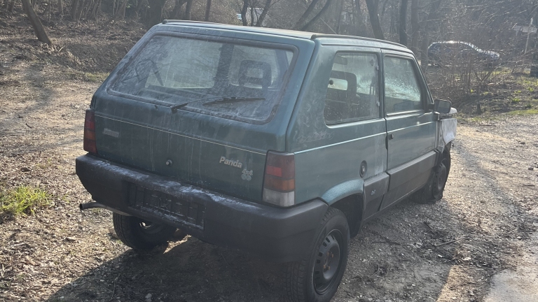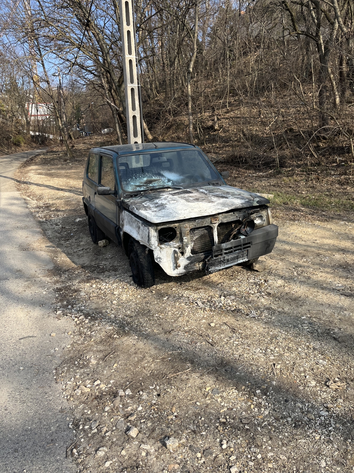 A Denevér úton, a Denevér köz magasságában egy rendszám nélküli kiégett autóroncs található a zöld területen.