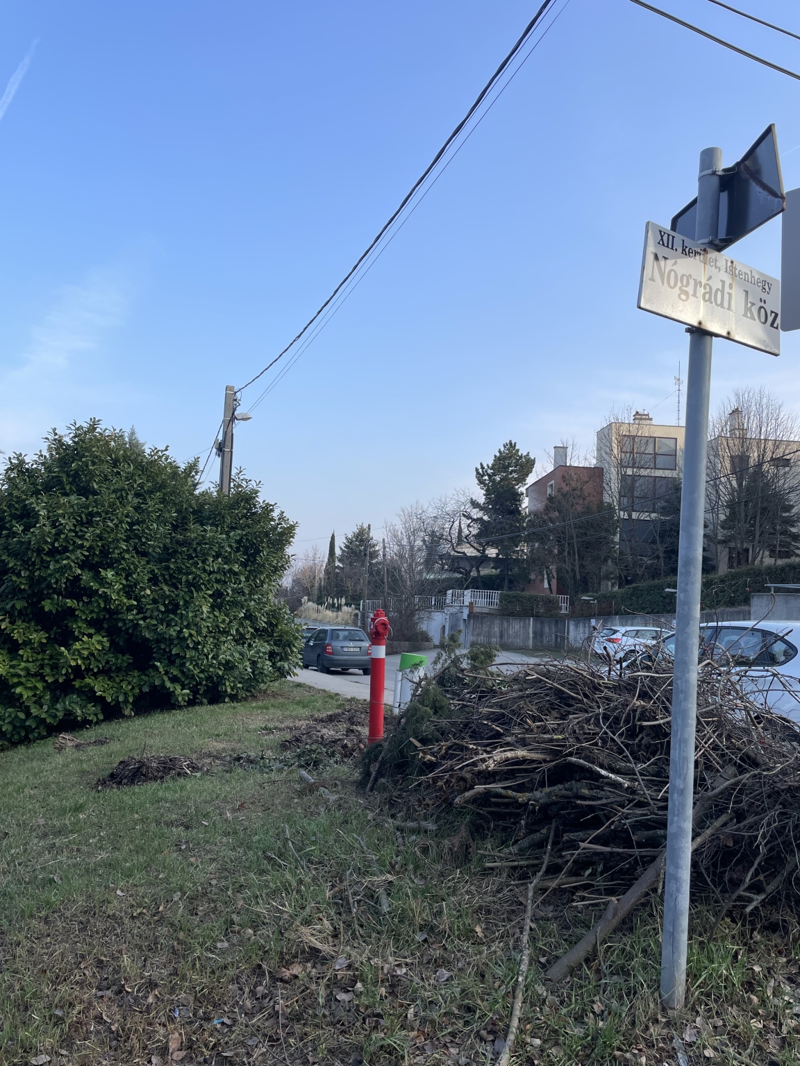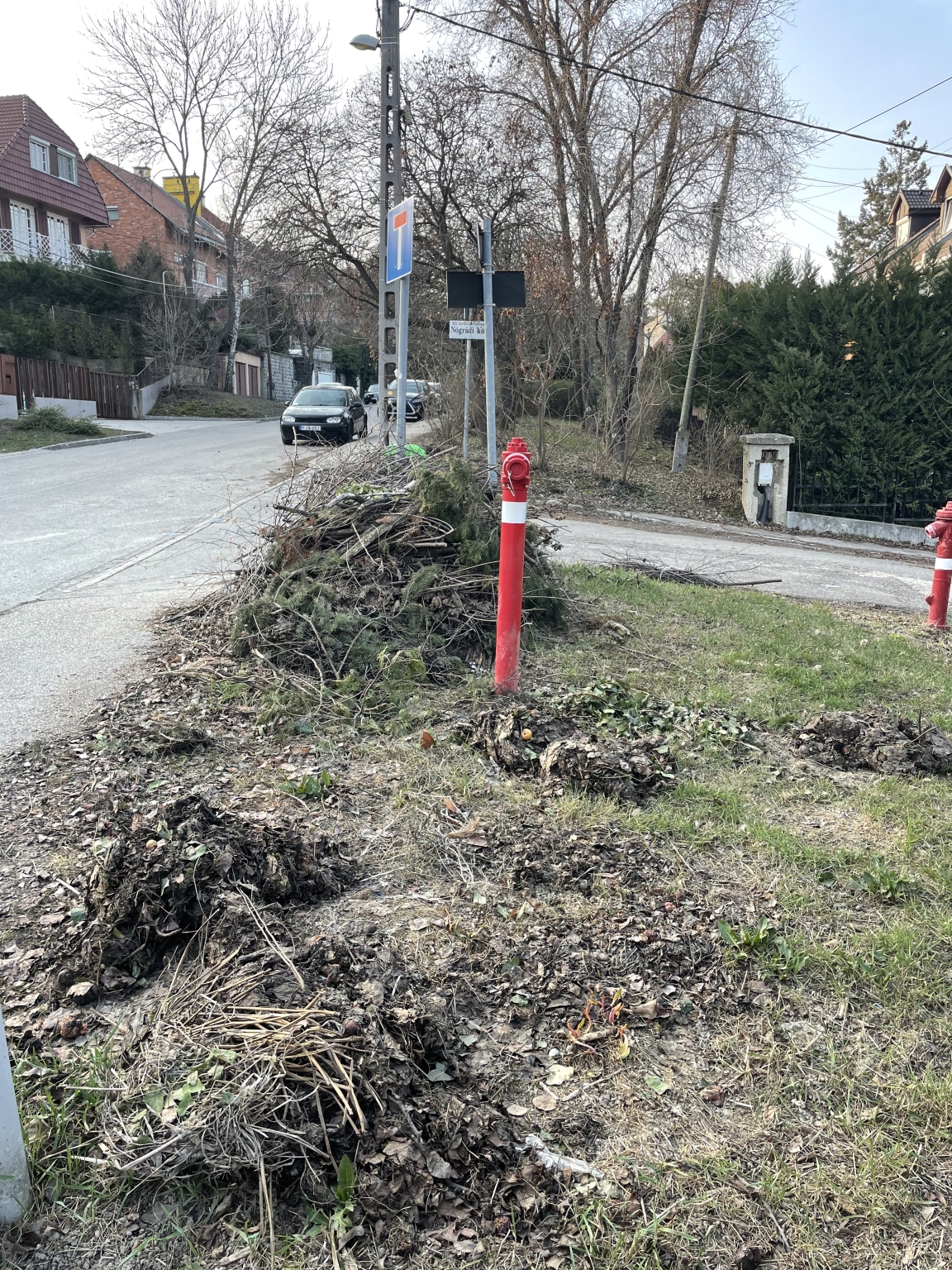 XII. Kerület Nógràdi utca - Nògràdi köz sarkàn folyamatosan gyűlik a szabàlytalanul kihelyezett zöld hulladék, amit így nem visznek el a heti zöldhulladèk gyűjtèsekor.
