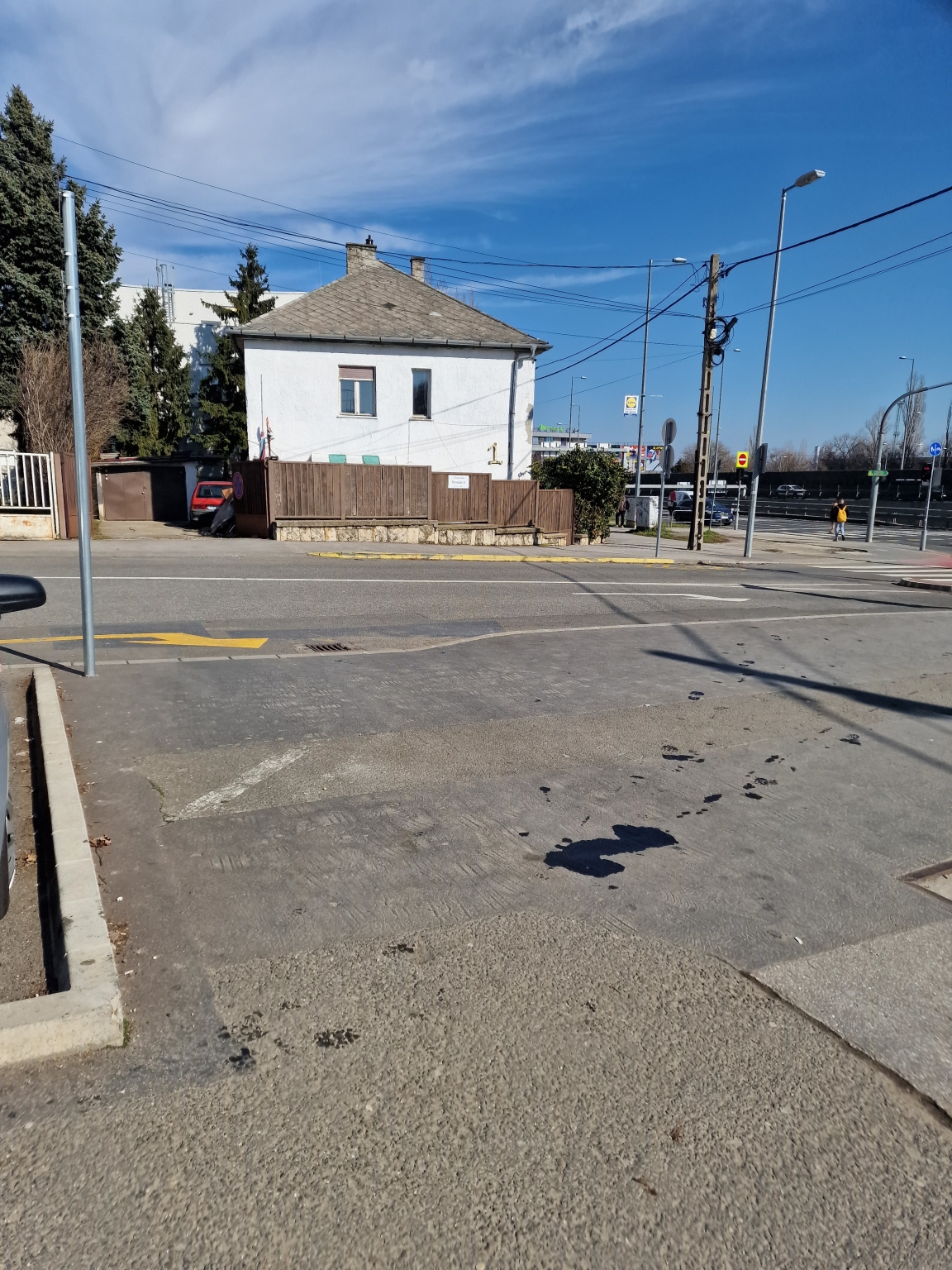 A Budaörsi út 121-nél ahol a diszkont áruházhoz érkező vásárlók szoktak a kerékpárúton szabálytalanul várakozni az autóikkal, kifolyt a kerékpárútra egy autóból az olaj. Szeretném kérni a takarítást.