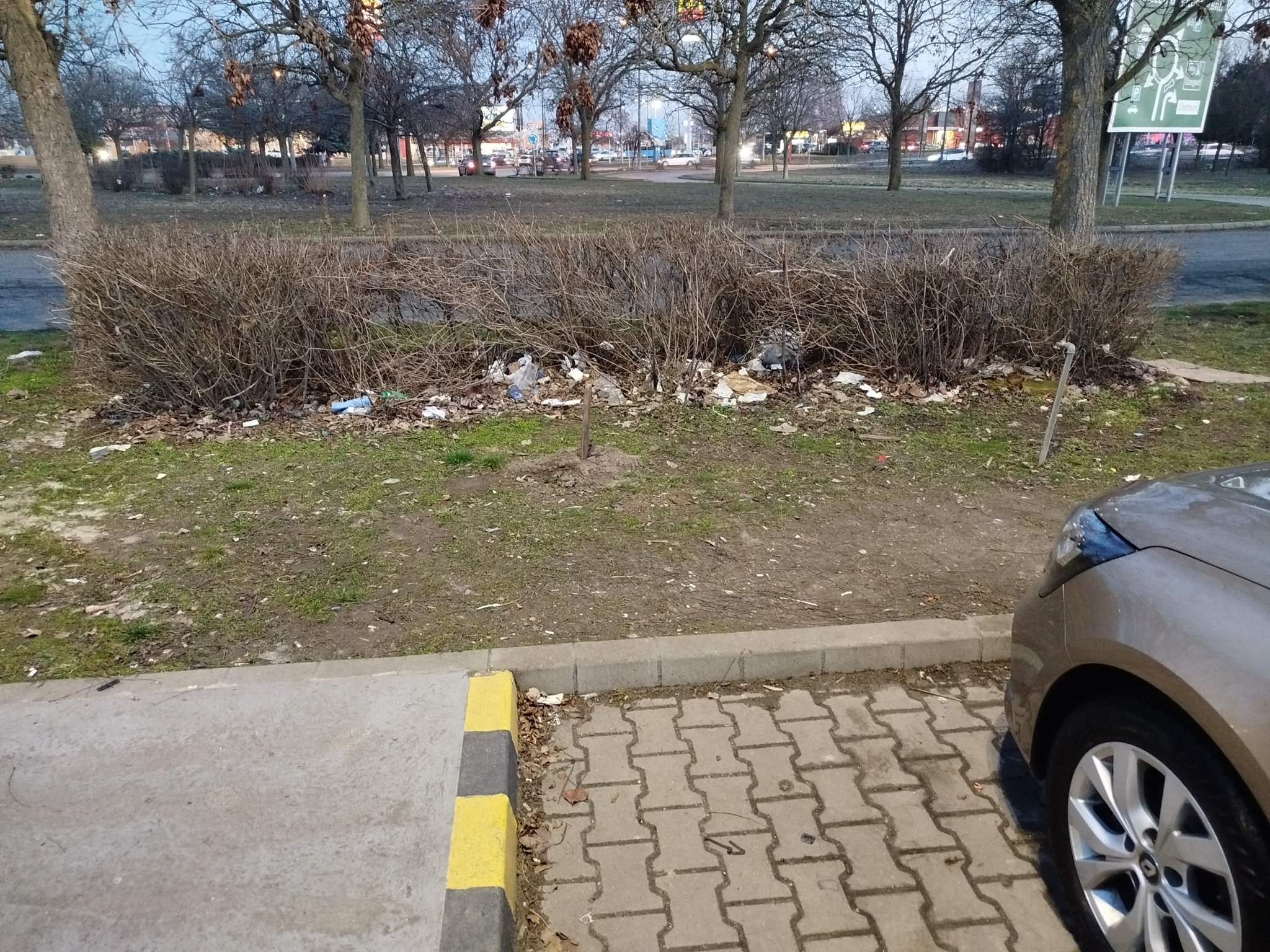 A környező közterületre kifújja a szél a szemetet, ami fennakad a bokrok ágaink, a tövénél.