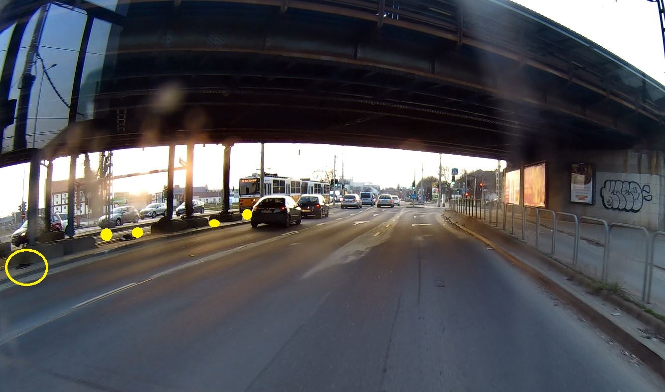 Tegnapi baleseti nyomok maradéka, és korábbi mindenféle hulladék (pici törmeléktől a nagy darabig) található a Kőbánya alsó vasútállomás alatt átvezető út középső szigetrészén, teljes hosszon.