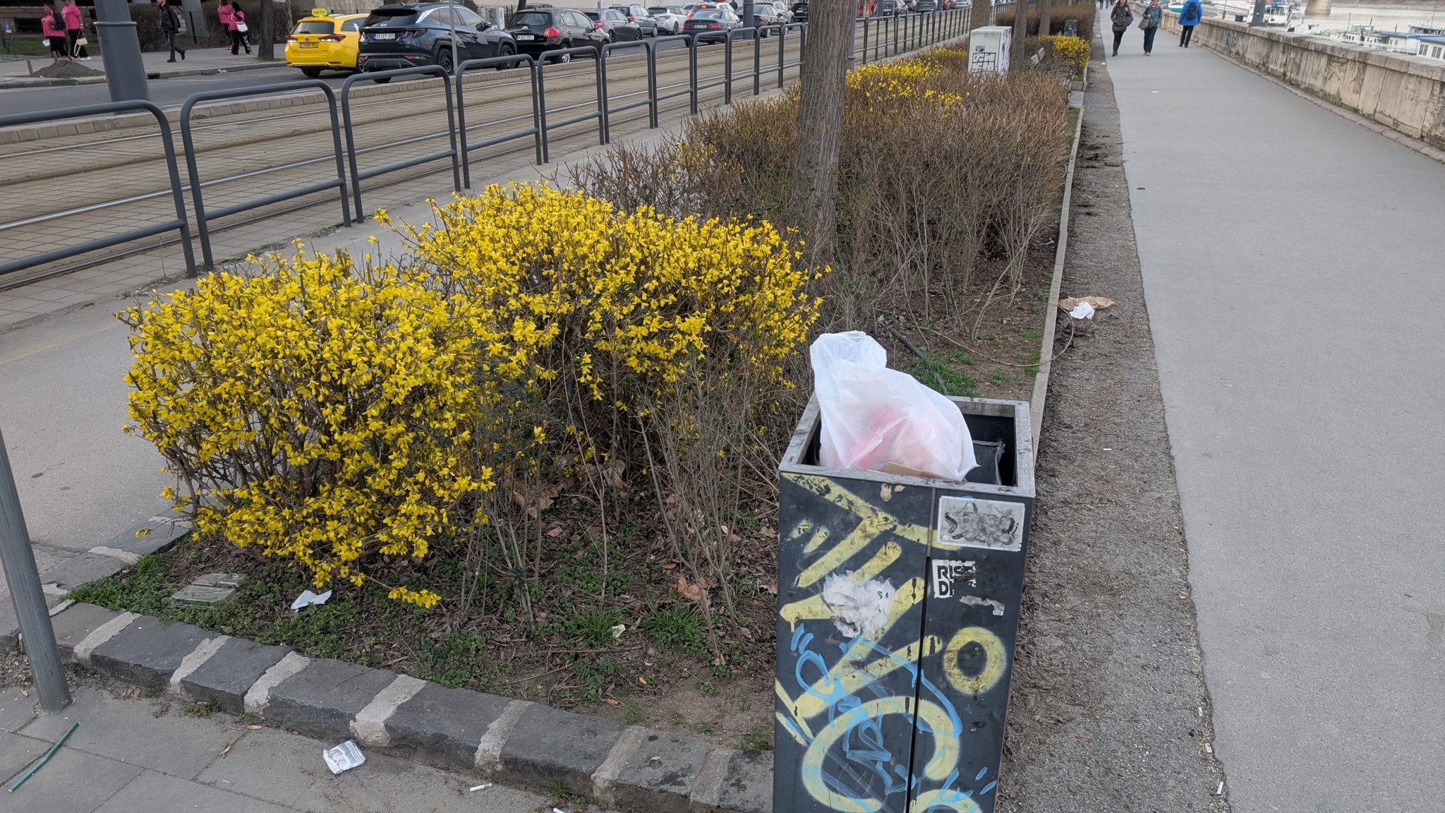 A Bem rakpart menti kerékpárút és a sétány közötti bokorsáv tele van szeméttel. A Batthyány tértől a Margit hídig húzódó teljes szakasz érintett.