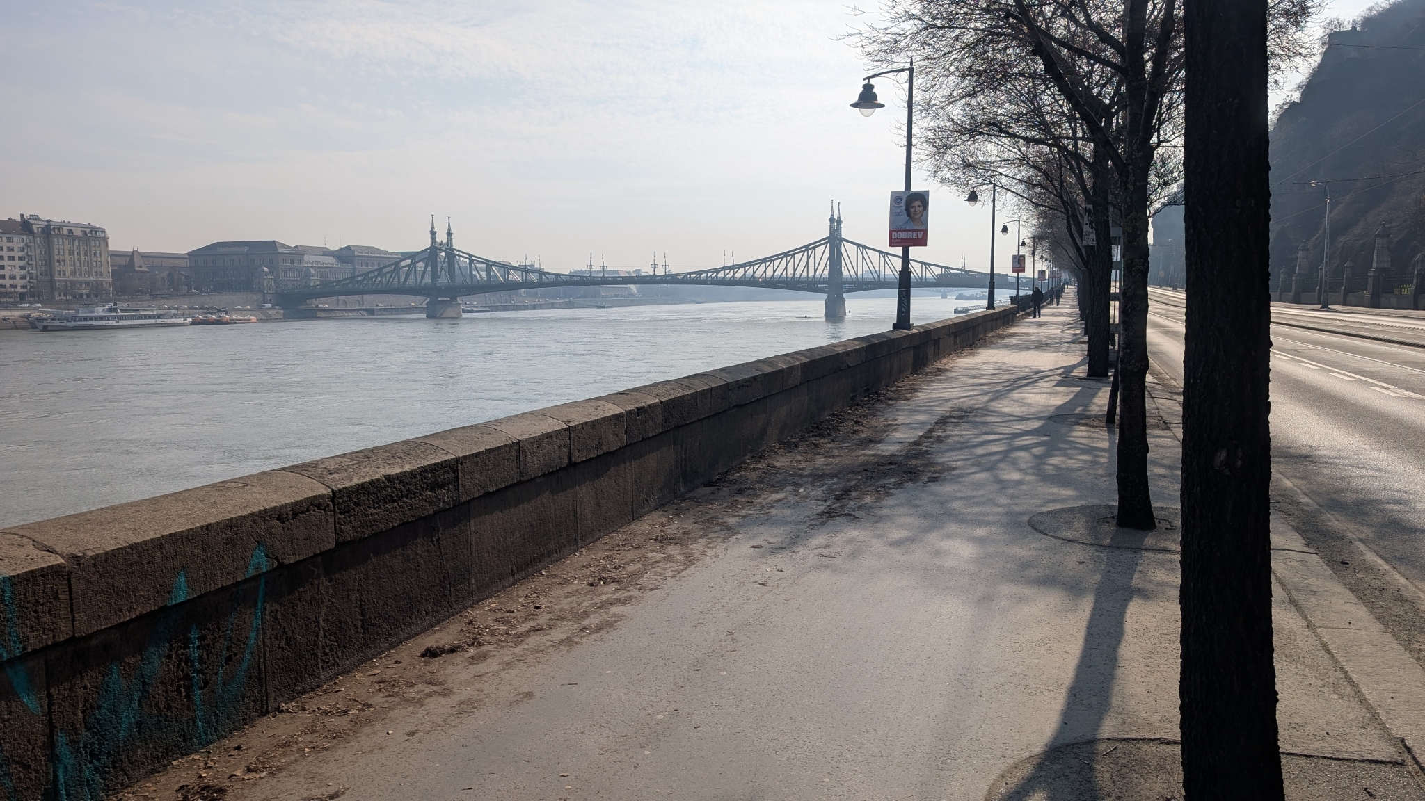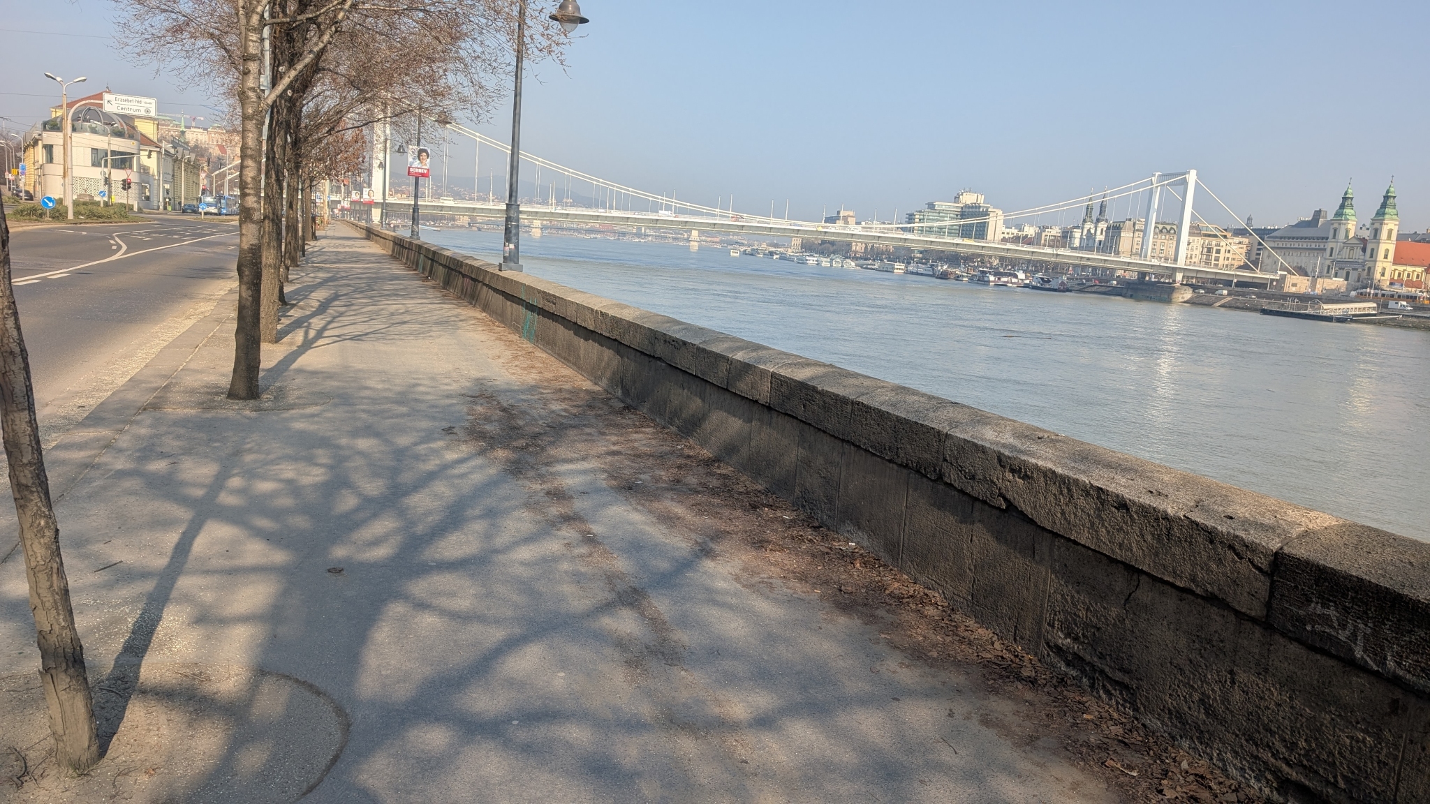 A budai oldalon az Erzsébet híd és a Szabadság híd közötti szakaszon haladó kerékpárút és járda takarításra szorul.