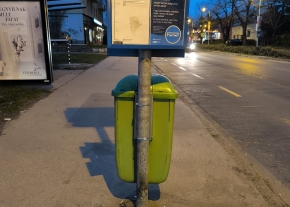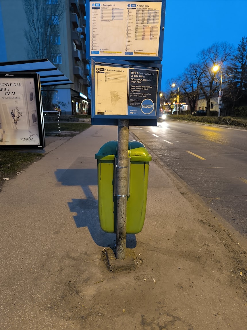 A Tétényi út Karolina út elnevezésű 7-es megállójában leégett a kuka.