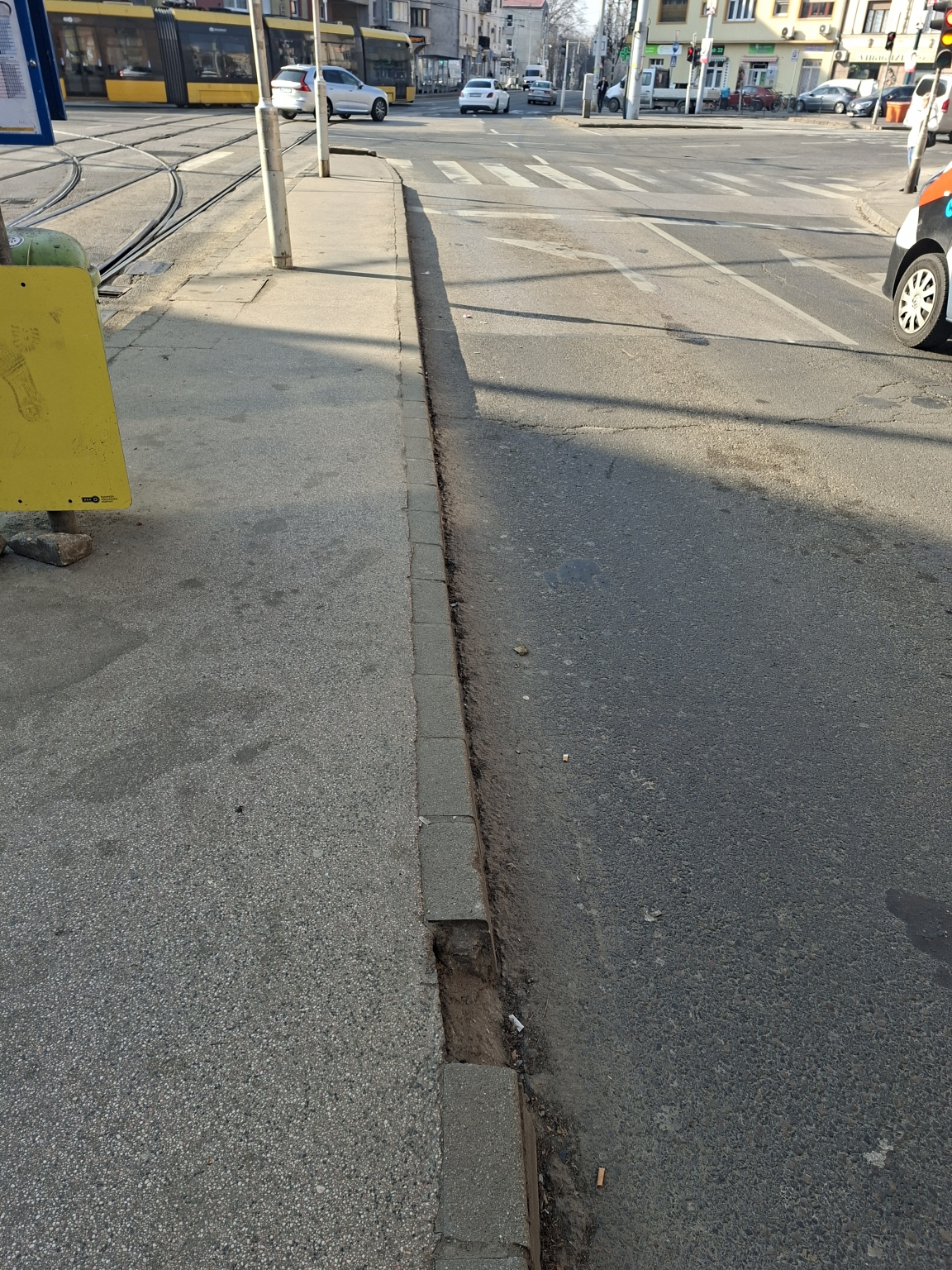 Zuglóban az Erzsébet királyné 43 szàm előtti villamosmegálló jàrdájàból hiànyzik egy darab. Balesetveszélyes.