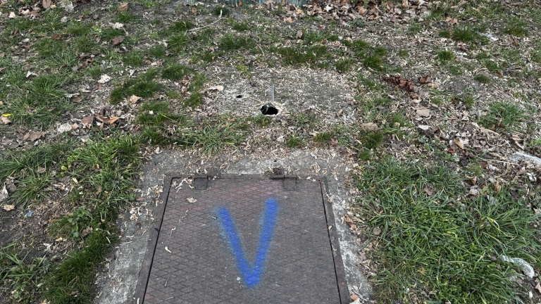 A Fiastyúk 24-26 közötti zöld területen folyamatosan bemossa az eső a talajt. Mivel az egyik csatornafedélen V betű látható, feltételezzük, hogy víz, de több cső is fut alatta. Mivel negyedévente betömetjük, most már arra gyanakszunk, hogy valahol a csatornába moshatja be a rengeteg földet. Arra nem vállalkozunk, hogy a társasház pénzéből feltérképezzük, mi lehet a hiba. Emellett a V betűvel ellátott csatornafedél felett egy másik csatorna fedele kilyukadt. Kérjük mielőbbi javítását!