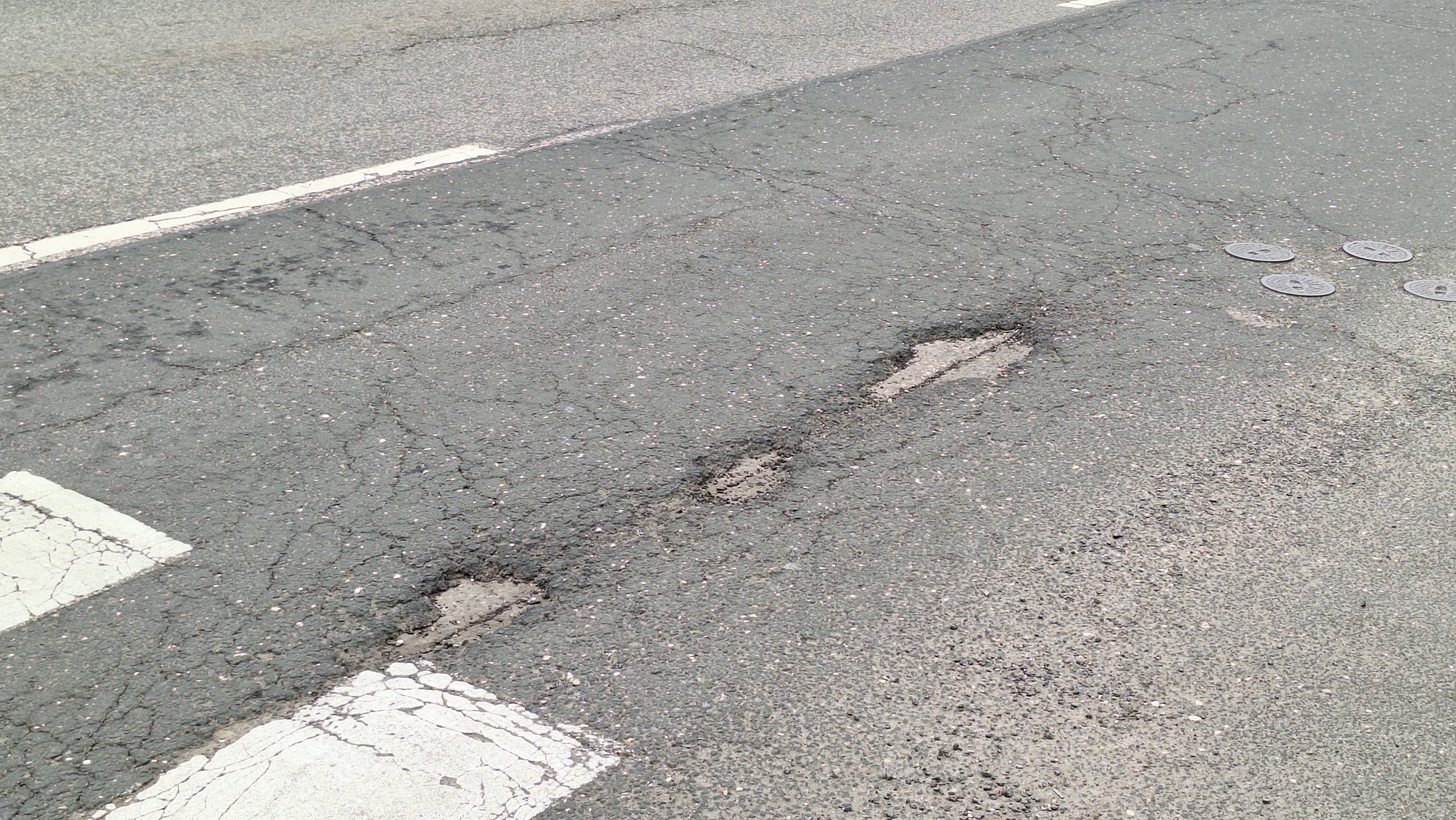A Lázár és Magyar utca kereszteződésében kátyúsodik az út.