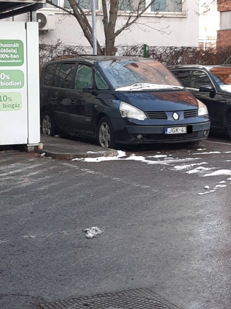 11. Kerület. Prielle Kornélia út 25. Mol benzinkút, hátsó rész. Renault Grand Espace típusú gepjármű, JGK43. rendszámmal, 2020.09.28 an lejárt műszakival, elhagyatva áll