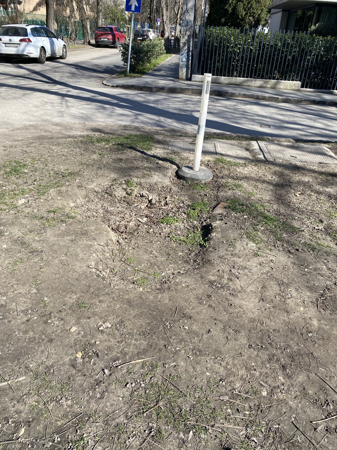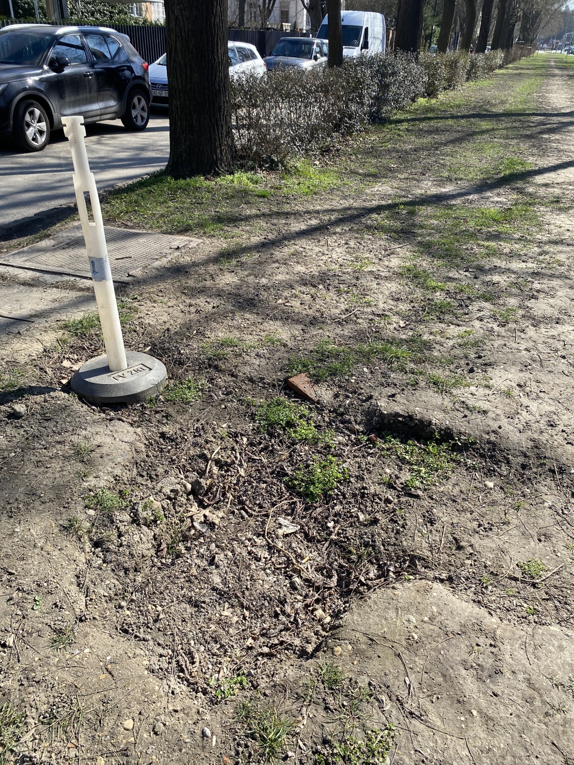 Ez a terület korábban füves zöldfelület volt, amelyet a munkálatok során teljesen tönkretettek. Kérem a terület rendezését és a zöldfelület eredeti állapotának helyreállítását.