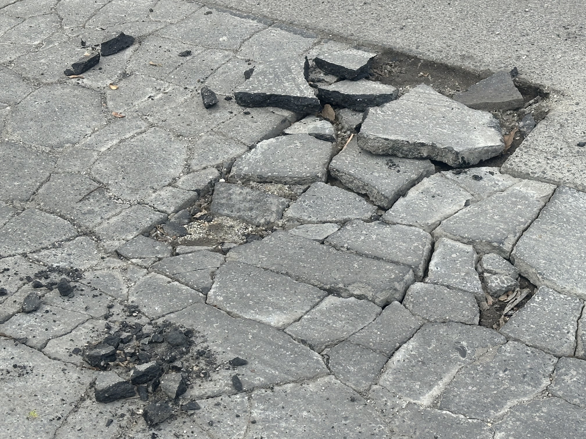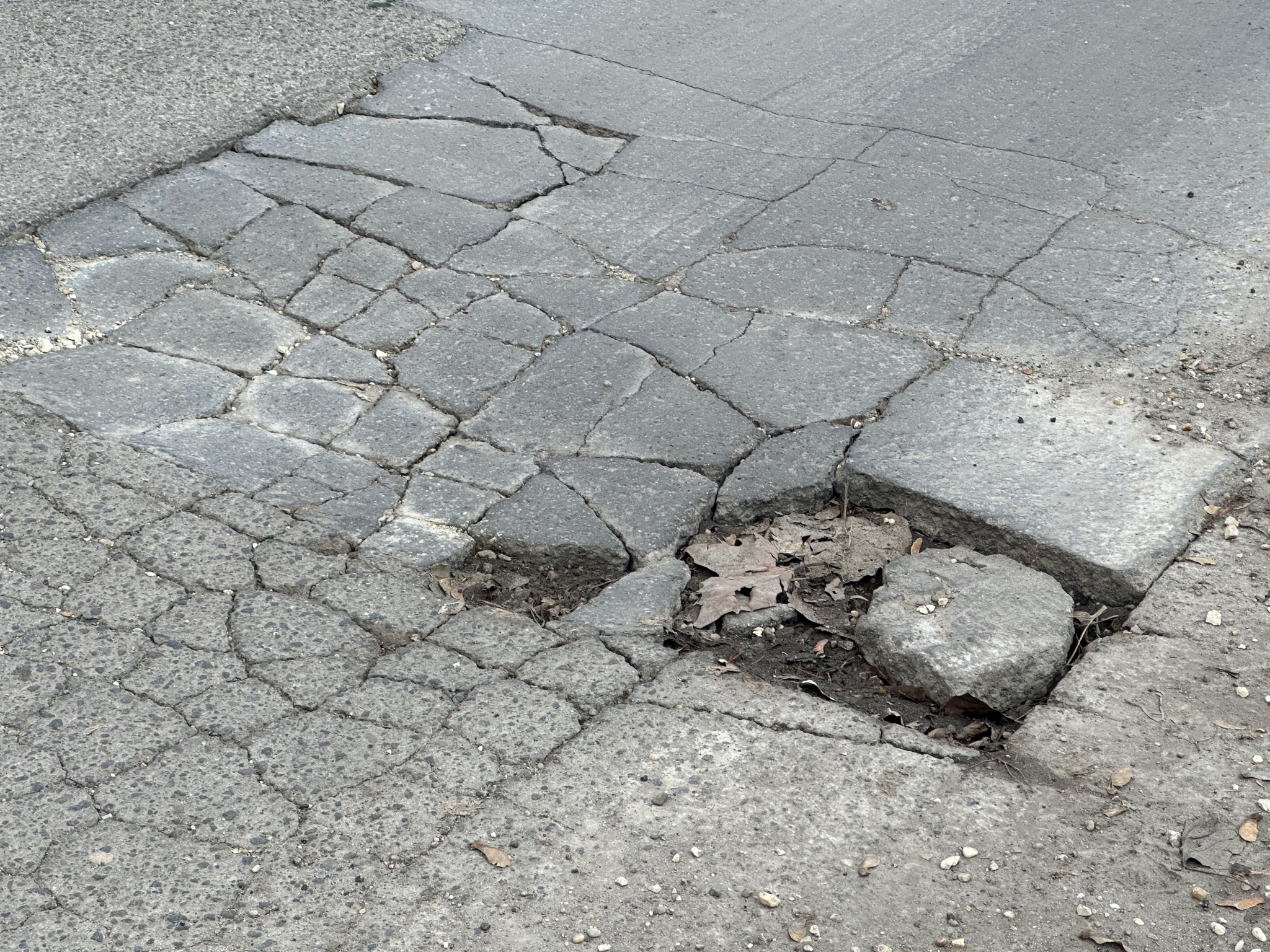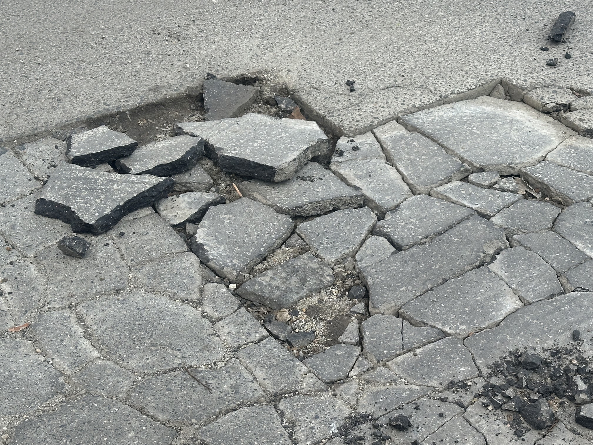 1195 XIX. ker. Tartsay Vilmos utca 21-23 közötti részen nagyon sok kátyú és útburkolat probléma található