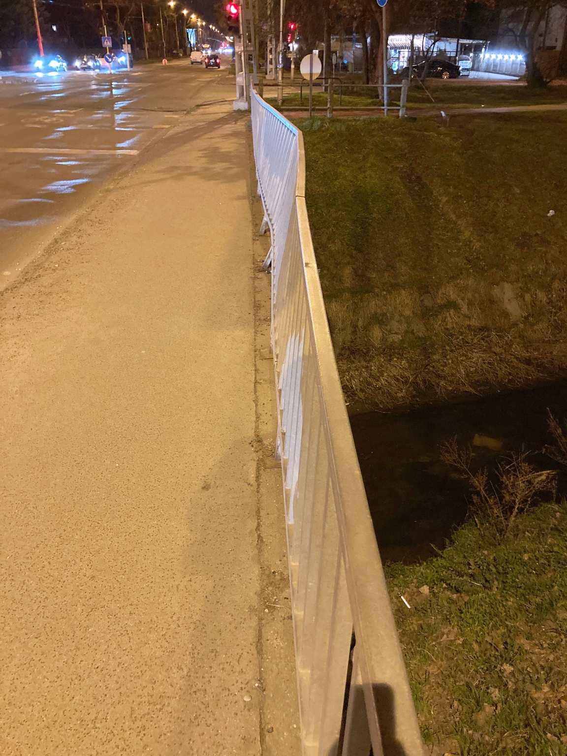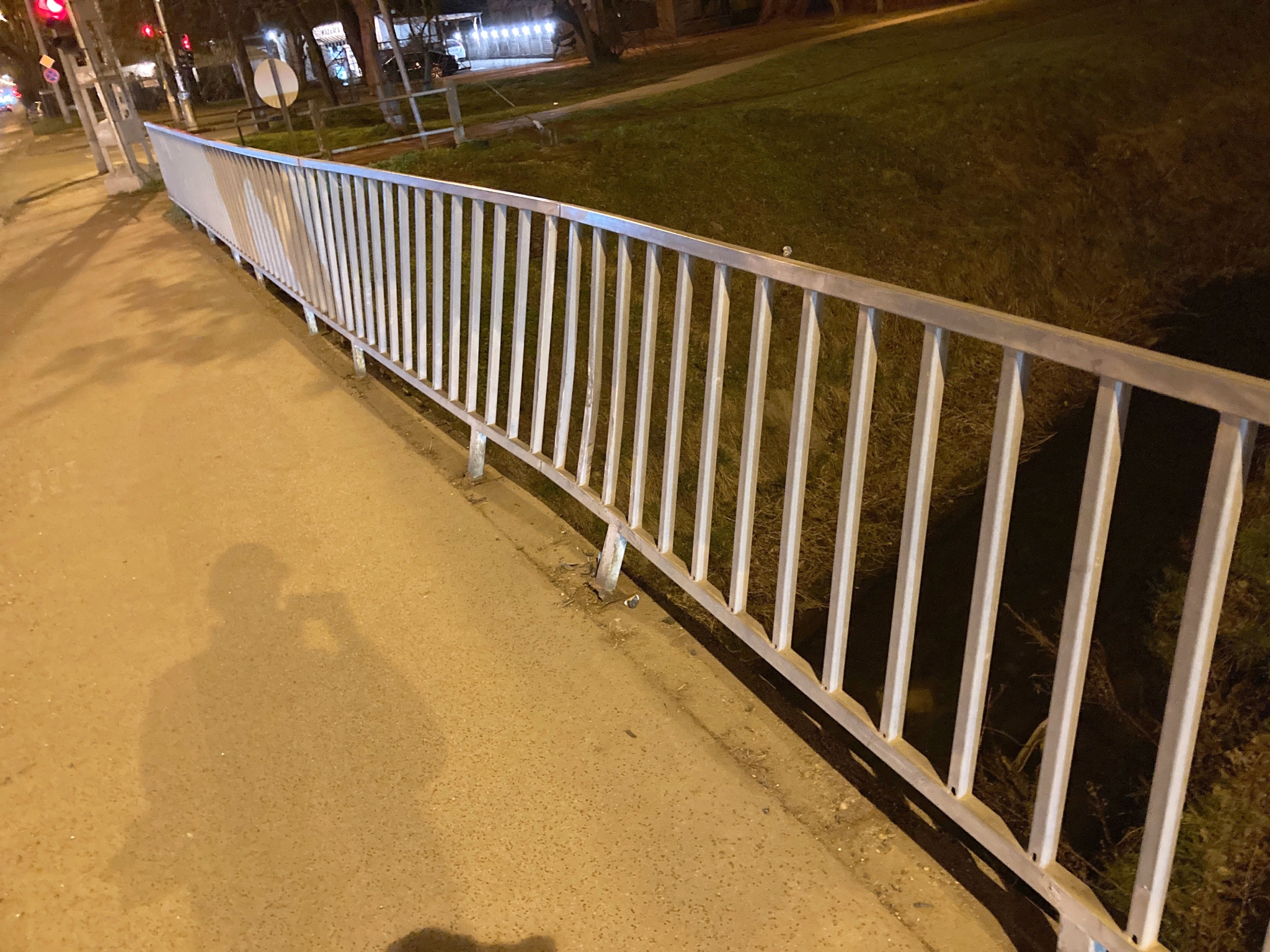 A korlát a patak irányába be van dőlve, feltételezhetően egy korábbi baleset következtében.