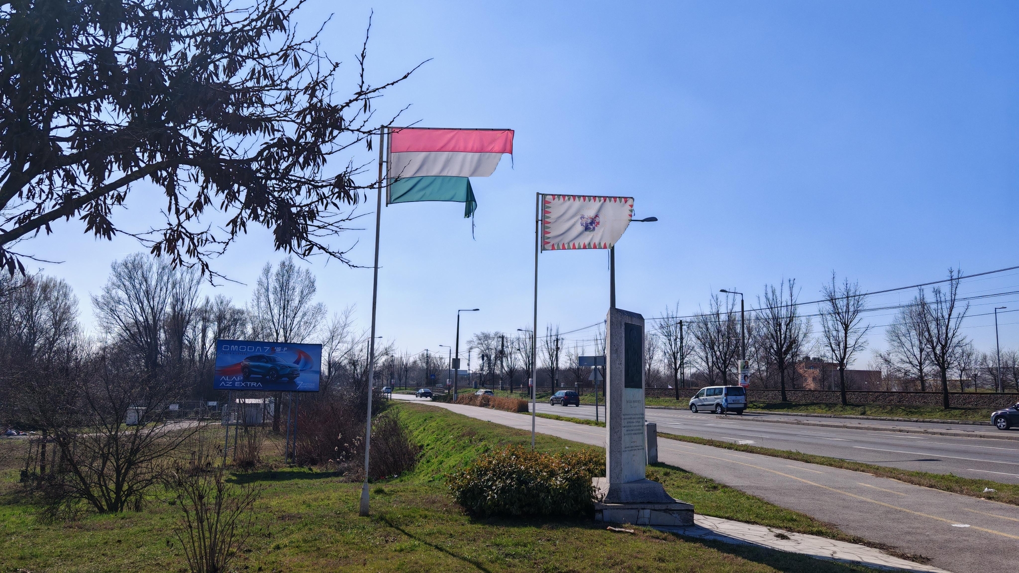 A jelölt helyen lévő zászlók szakadtak, nem szép látvány. Érdemes lenne lecserélni őket.