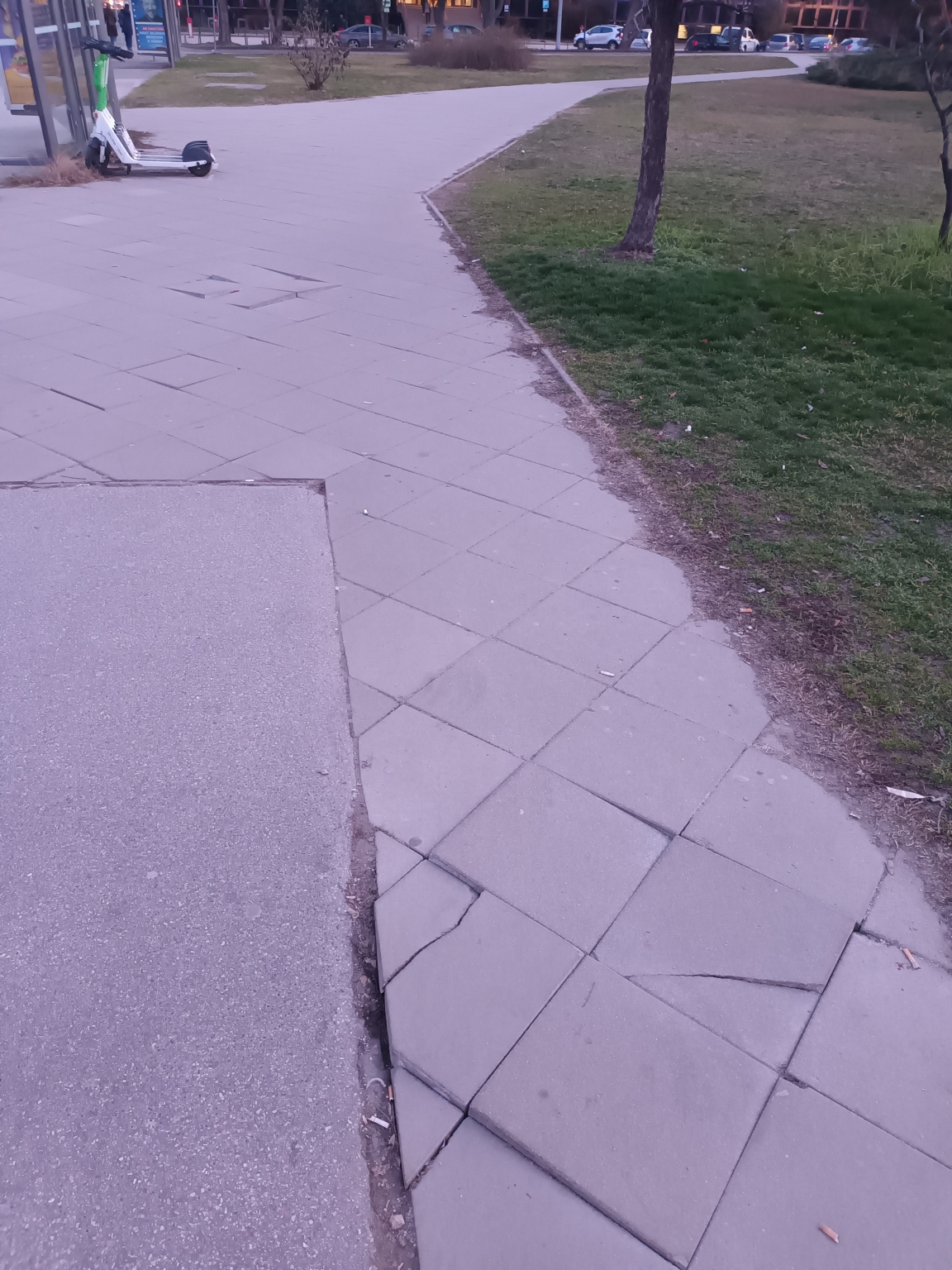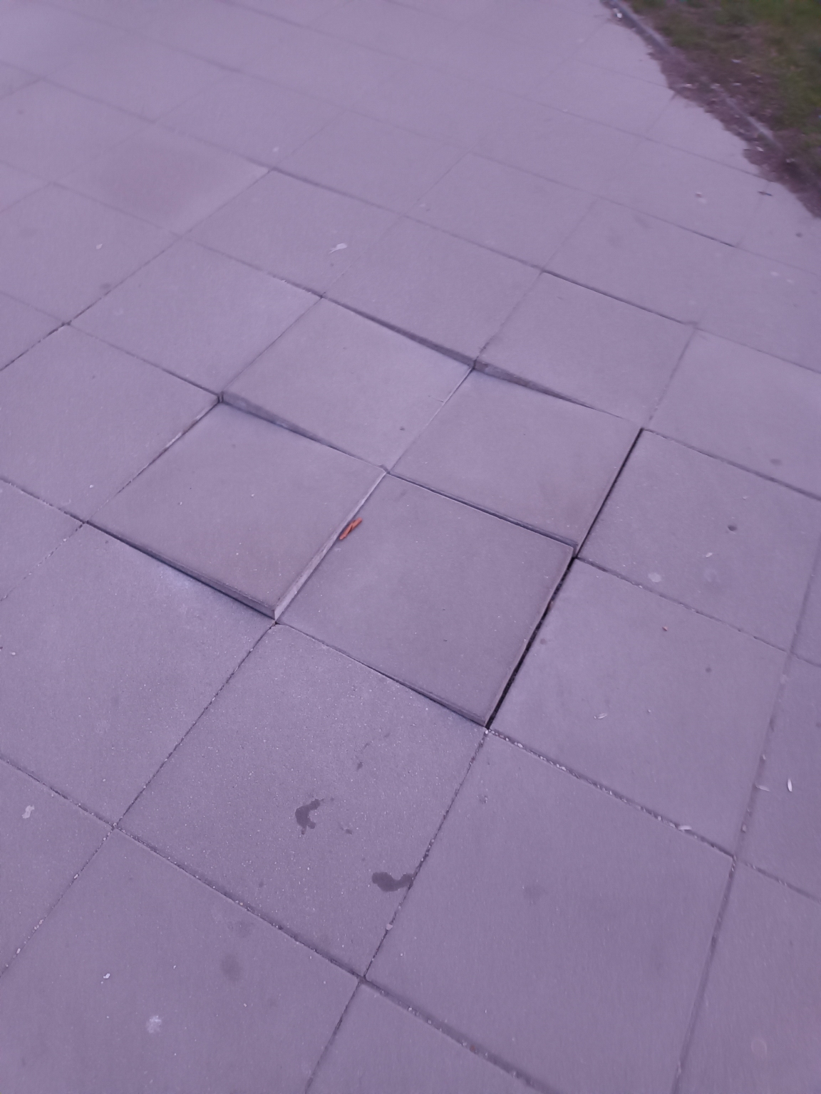 Göncz Árpád Városközpont metró megállónál fent a 32 busz megállója mellett több térkő is balesetveszélyesen mozog.