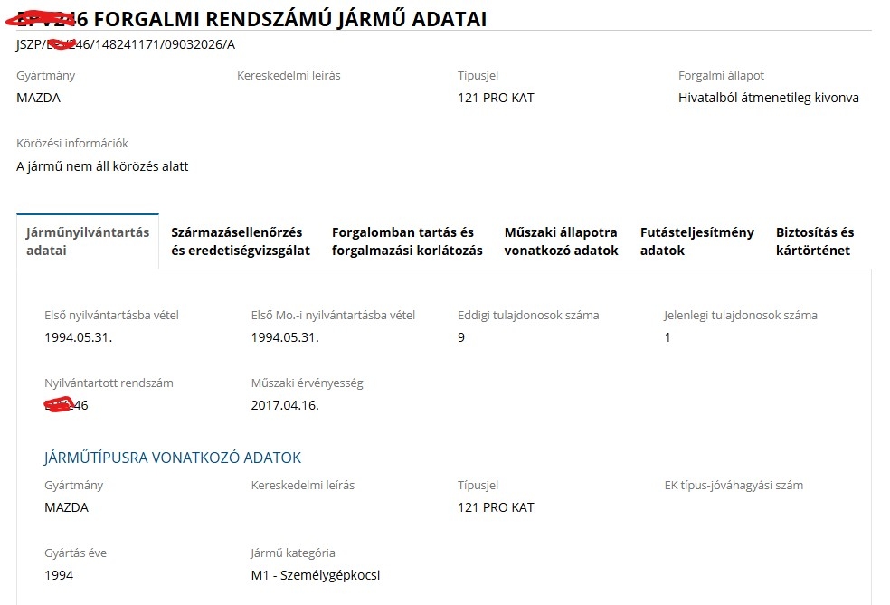2017-ben lejárt műszakis, forgalomból kivonva.