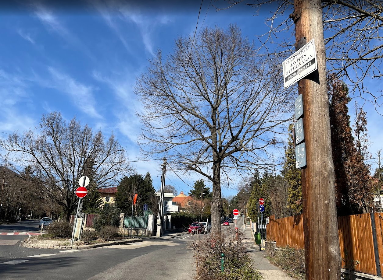 Illegális reklámtábla a Budenzen a virágbolt előtt