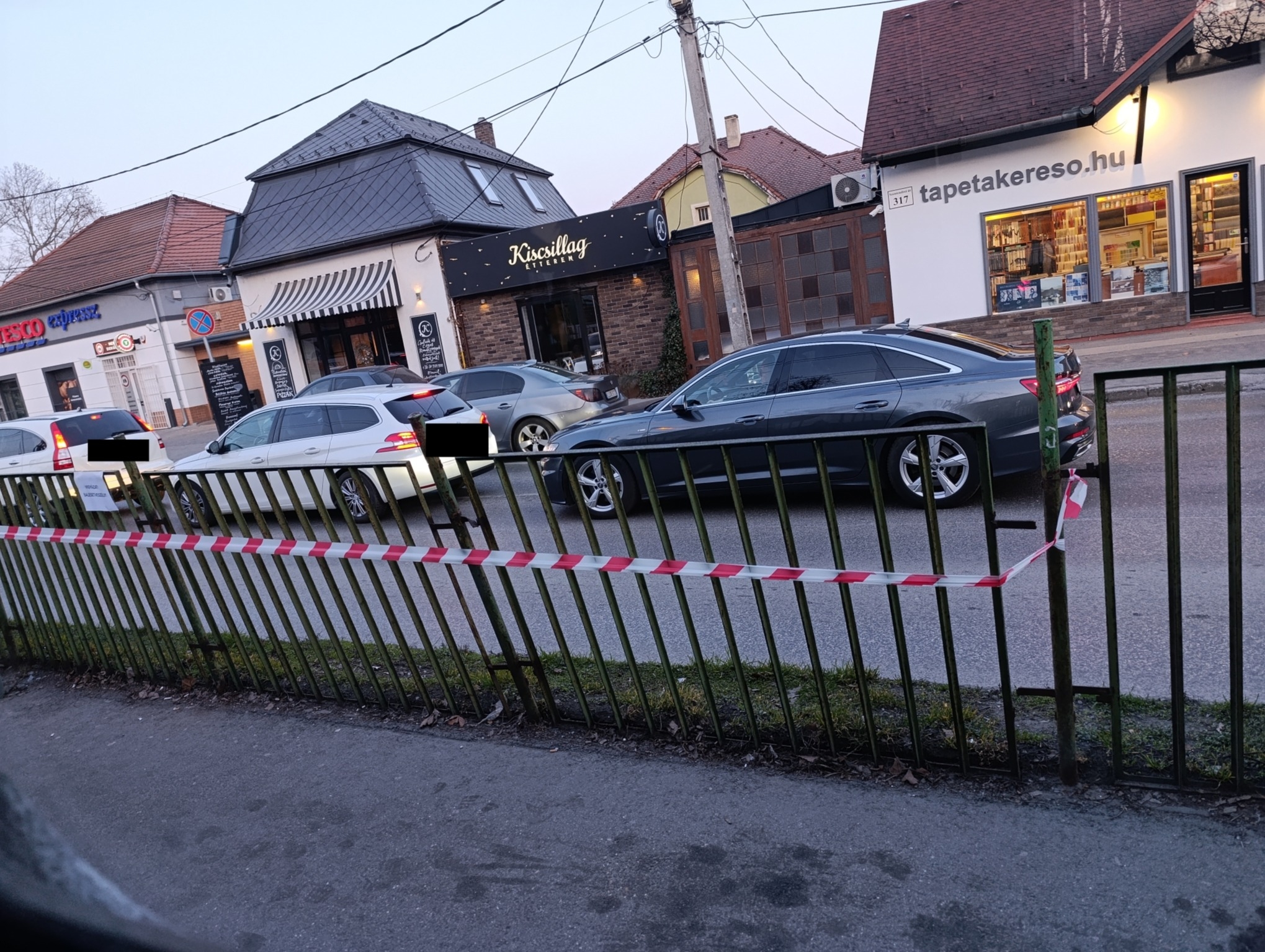 Csillaghegy hévmegállóban a Szentendre irányú peronnál a kerítés egy szakaszon kidőlt, így mind az autókra, mind a várakozó utasokra balesetveszélyes.