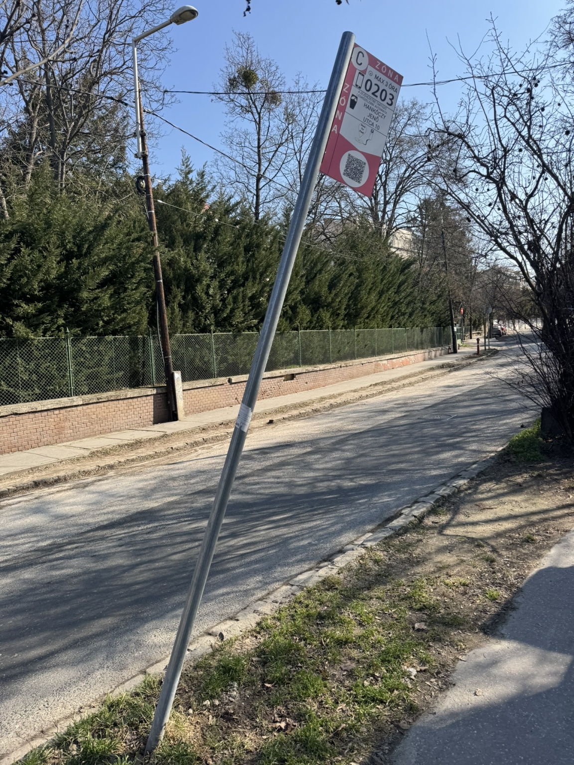 Félig kidőlt parkolási tábla