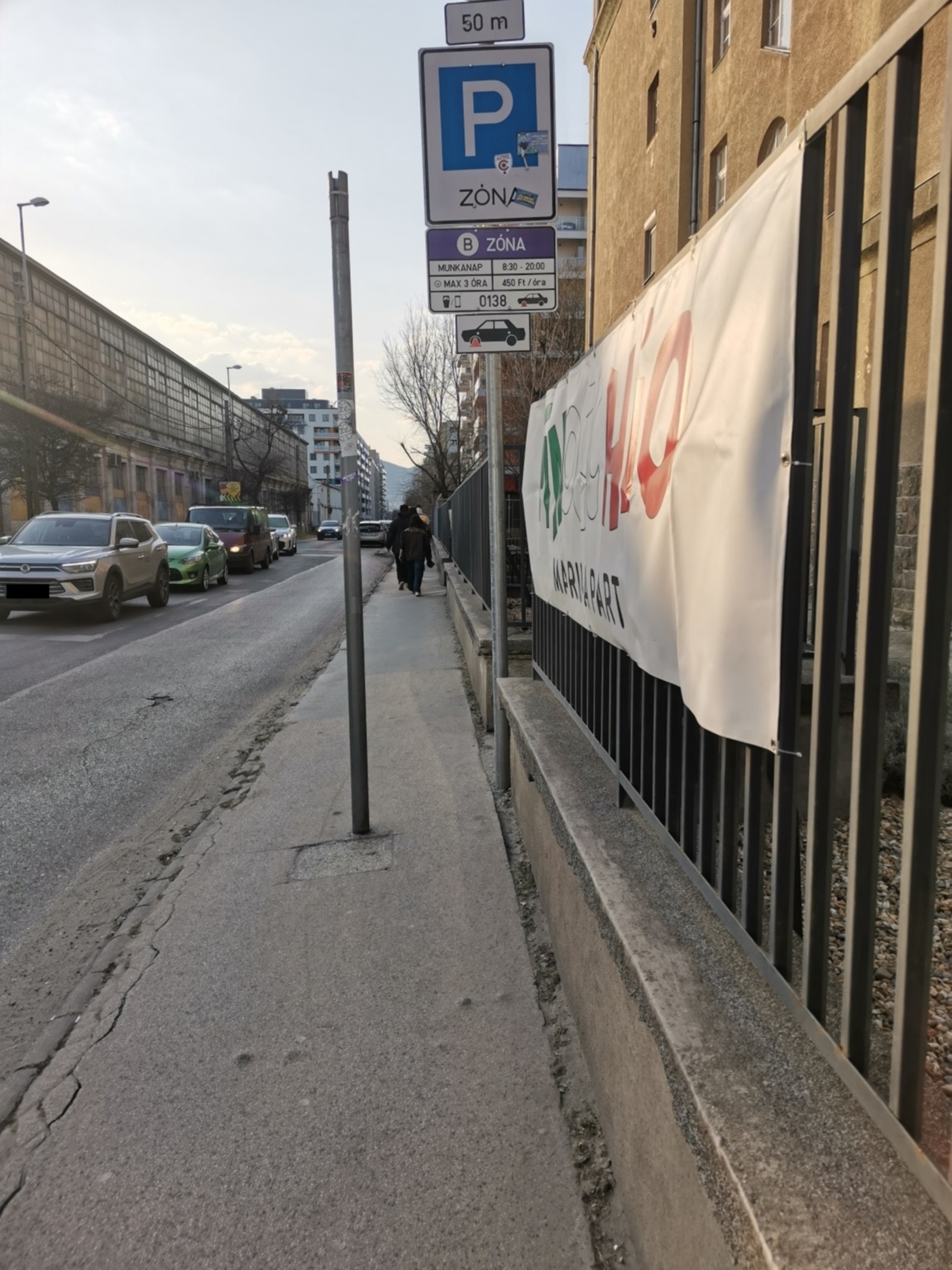 Járda közepén álló, használaton kívüli oszlop