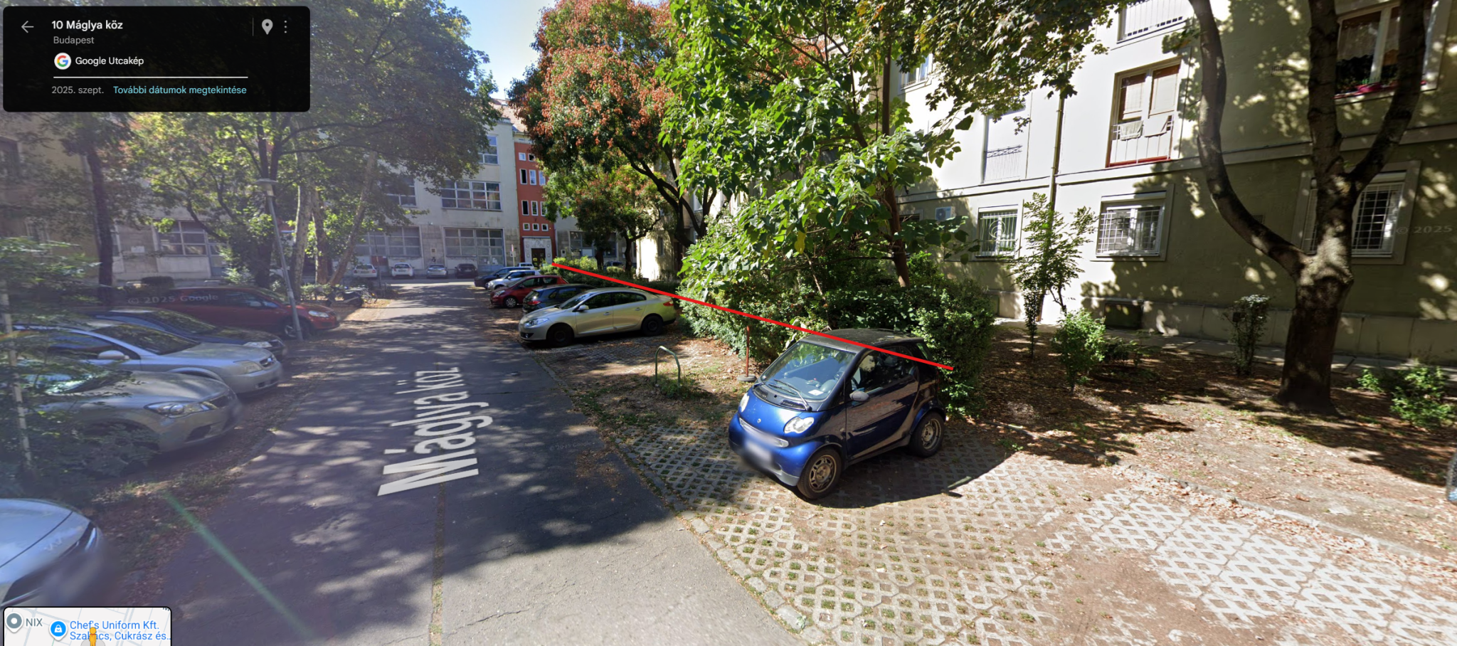 a Máglya közben a tavasz beköszöntével a lépen pirossal jelzett szakaszon jelentősen meg kell nyírni a sövényt, mert már autóval nem lehet parkolni, hiszen a sövény megkarcolja a fényezést vagy nagyon kilóg a parkolóból.