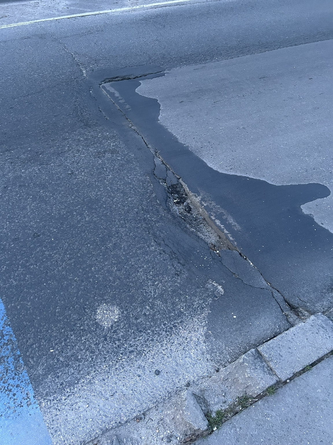 Háros vasútállomás mindkét irányú közúti megállójában a képen is látható kátyúk vannak.